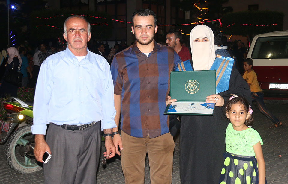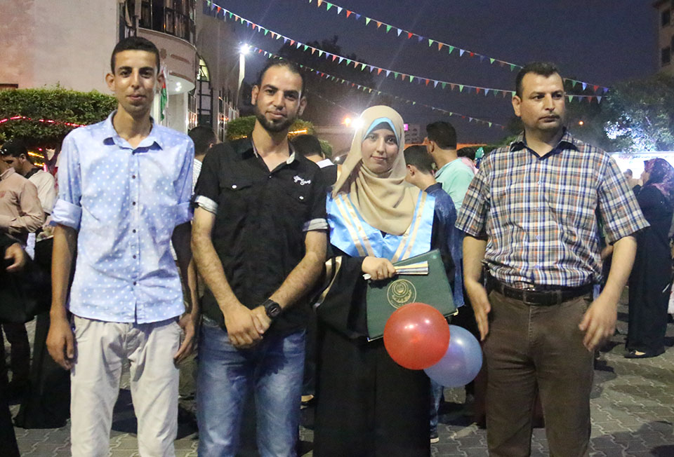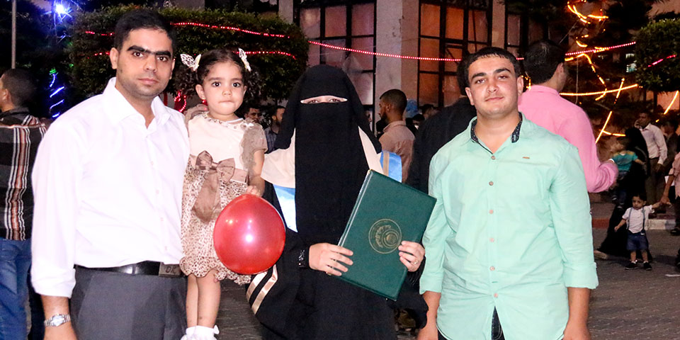 صبحي سامي الأغا وشقيقته الخريجة سمر وزوجها أ. عماد وطفلتهم تقى