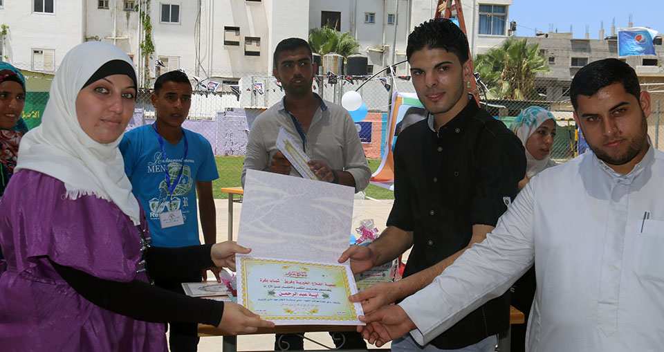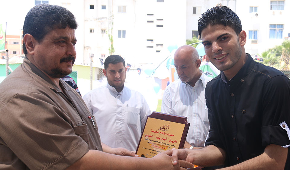 واختتم الحفل بتكريم موقع النخلة ممثلاً بالاستاذ ياسر الاغا الذي شارك في انجاح الحفل