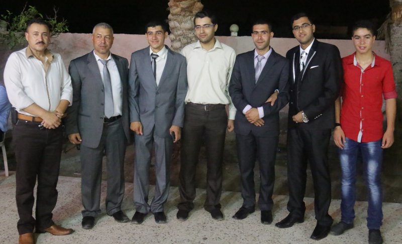 أ. محمد(شقيق العروس)، الحاج نبيل أحمد الأغا، أحمد نزيه ووالده، الحاج سمير احمد الأغا، م. عودة محمد الأغا، أ. ايمن أحمد الأغا وشقيقه أسامة