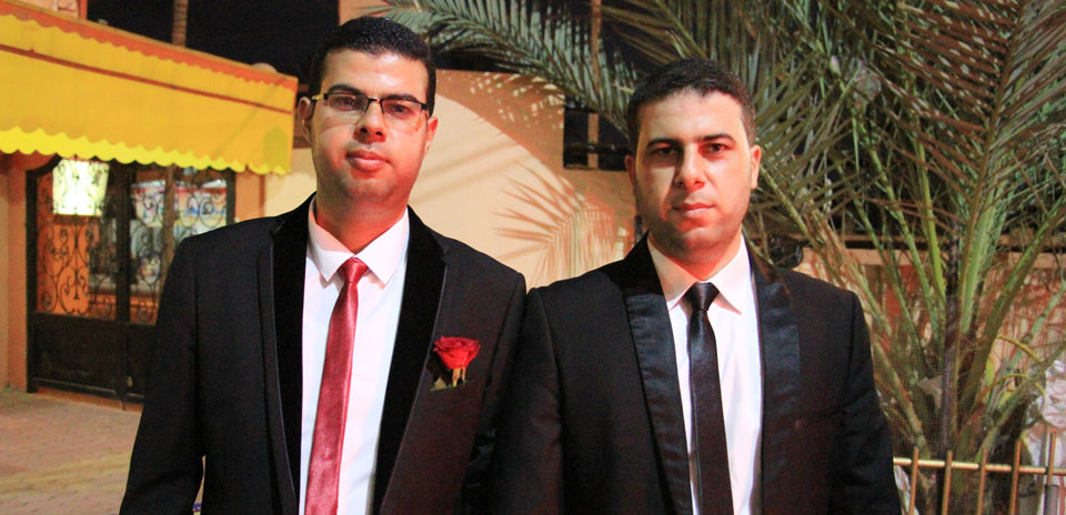 أ. يونس الأغا، والد العروس، جد العروس، أ. حسام محمد الأغا ونجله محمد، والد العريس، العريس، أ. هاشم يوسف