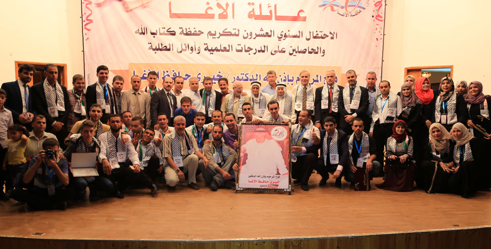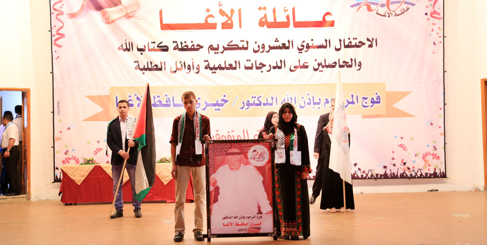 للعام العشرين علي التوالي ووسط حضور رسمي وعائلي وبمشاركة الشخصيات الاعتبارية والوطنية ولفيف من المجتمع المحلي، نظمت عائلة الأغا حفلها السنوي العشرين لتكريم حفظة كتاب الله وأبنائها المتفوقين الحاصلين على الدرجات العلمية وأوائل الطلبة، والذي حمل اسم فوج المرحوم بإذن الله الدكتور "خيري حافظ الأغا" وذلك في المركز الثقافي التابع لبلدية خان يونس جنوب المدينة.