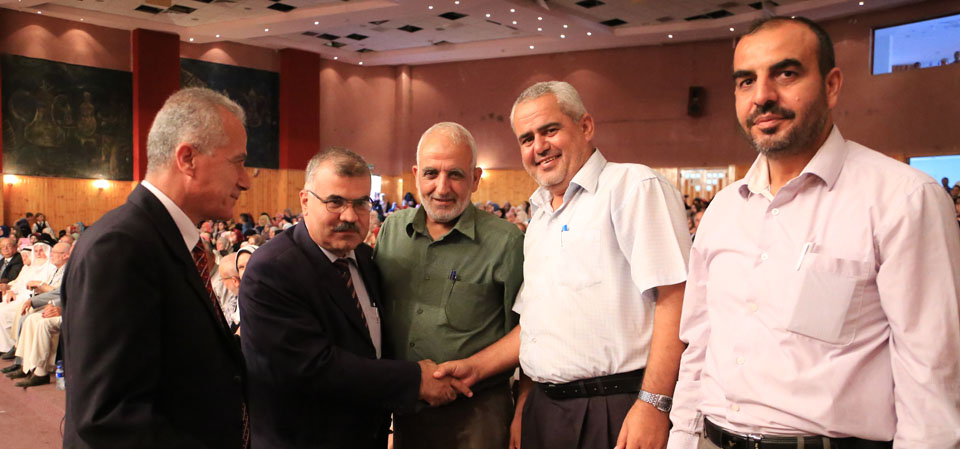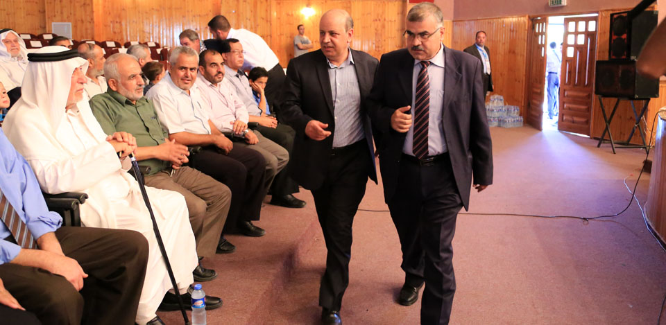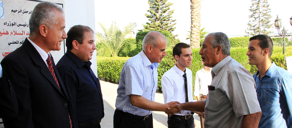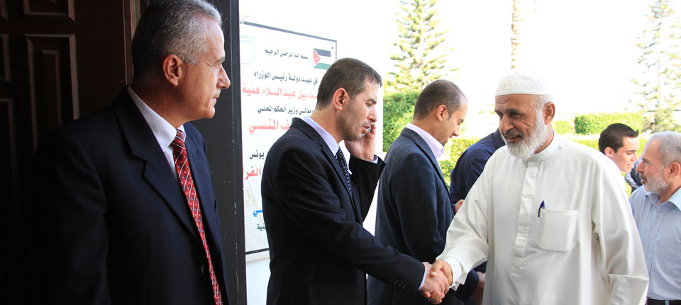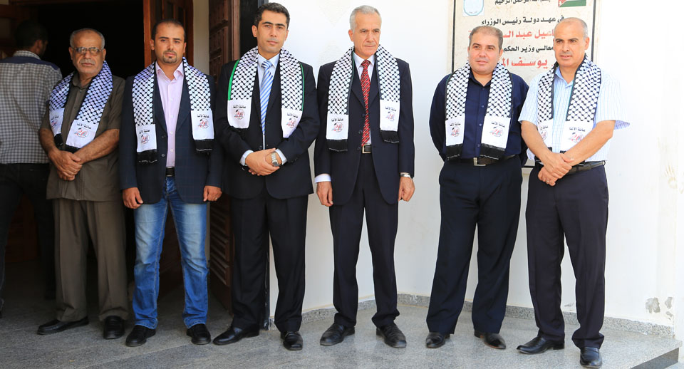 الشيخ محمد عبدالمعطي، د. محمد عثمان، الحاج محمد طاهر، د. إسماعيل صالح الفرا، الوزير أ. محمد الفرا، وزيرة المرأة د. هيفاء الأغا