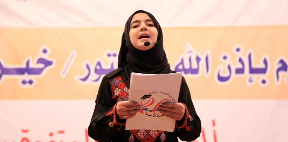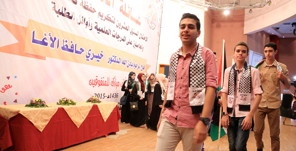 وحيت الطالبة المتفوقة شيماء أحمد الأغا الحاصلة على المرتبة الخامسة على مستوى الوطن في امتحانات الثانوية العامة للعام 2015م كافة الحضور، مبينةً في سياق متصل أن المتفوقين ثابروا وناضلوا وتحدوا الصعاب بالرغم من الظروف القاهرة التي ألمت بشعبنا، وكانوا أشد الحرص على حصد المراتب الأولى في كافة المستويات العلمية والذي كان بتوفيق ورعاية من الله عز وجل .