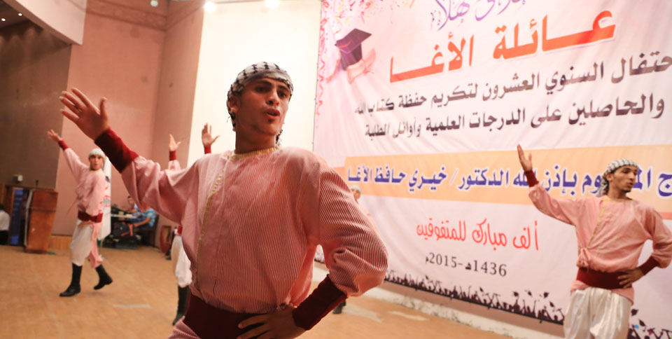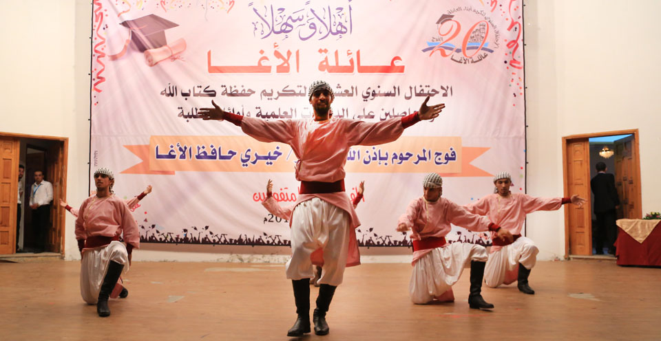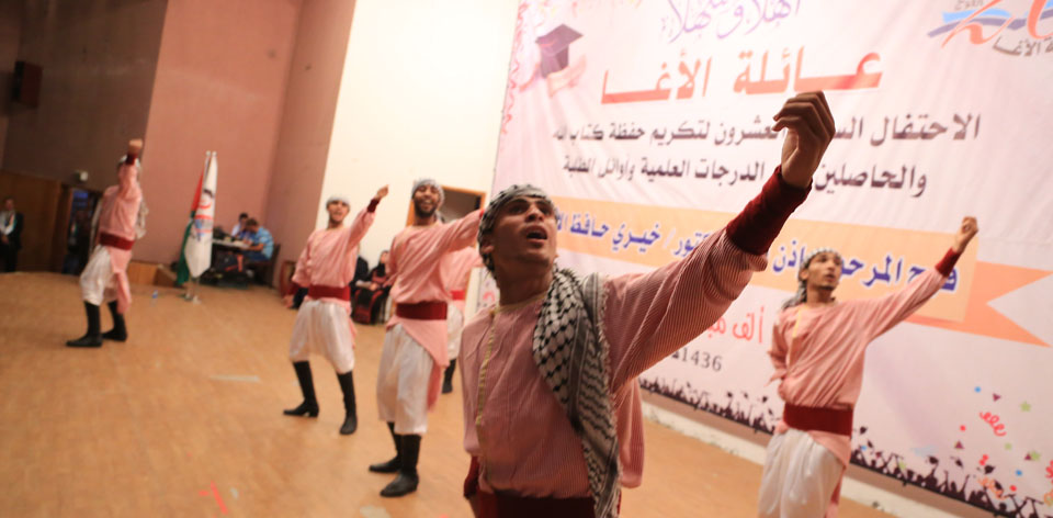 وتخلل الحفل إلقاء قصائد شعرية وعرض للدبكة الشعبية من الفلكلور الفلسطيني وعرض مصور عن قصص النجاح من أبناء العائلة في الأعوام السابقة، وفي نهاية الحفل الحاشد عبر المتفوقين والمتفوقات عبر رسائل مسجلة عن بالغ سعادتهم وشعورهم بالفرحة التى دخلت قلوبهم، وكما شكر الأهالي عائلة الدكتور المرحوم خيري الأغا والقائمين على هذا التكريم الذي لقي ترحيبا كبيرا من الجميع .