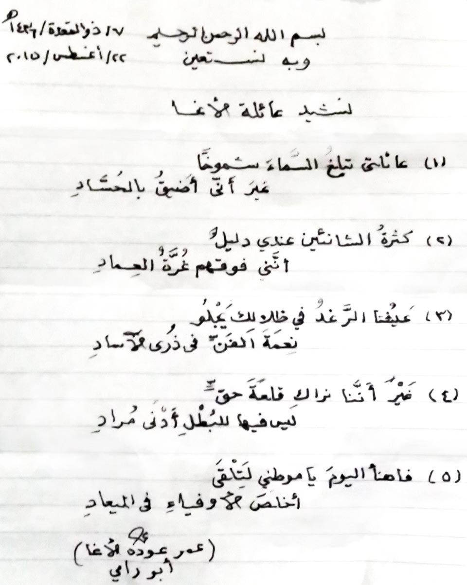 نشيد عائلة الأغا- أ. عمر عودة الأغا