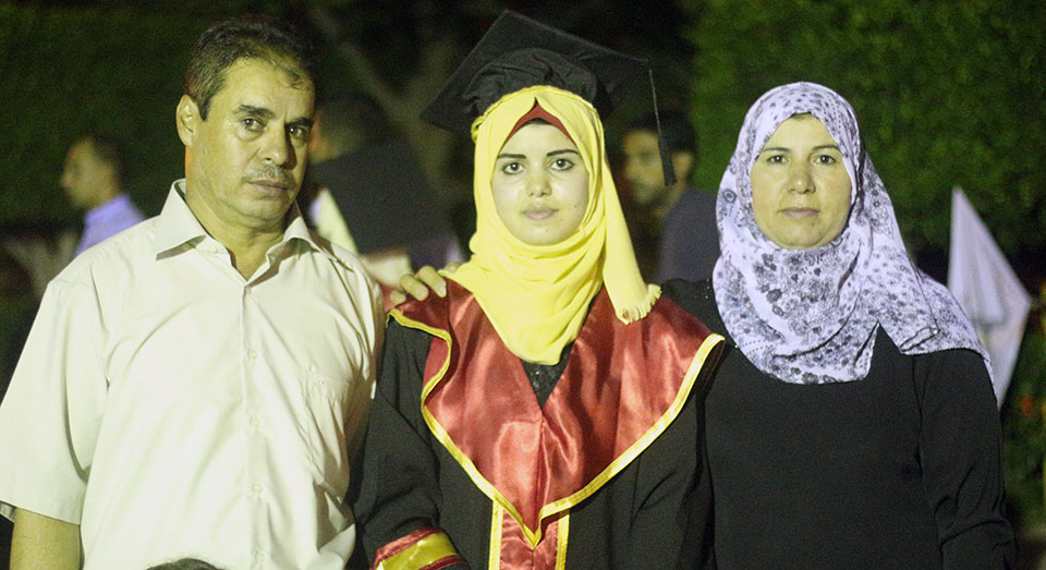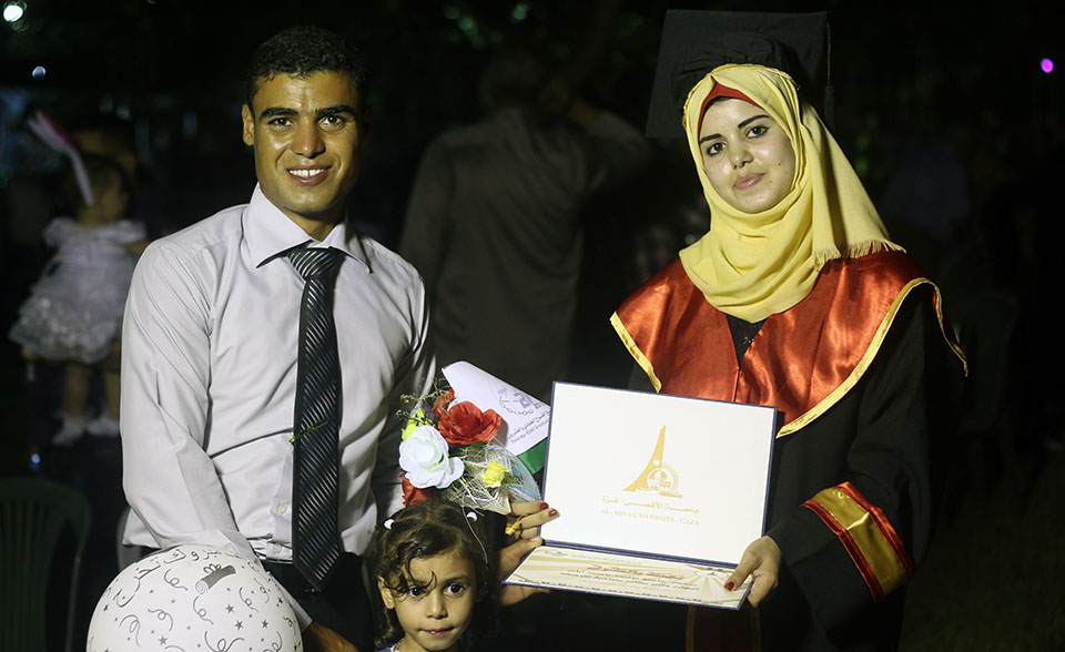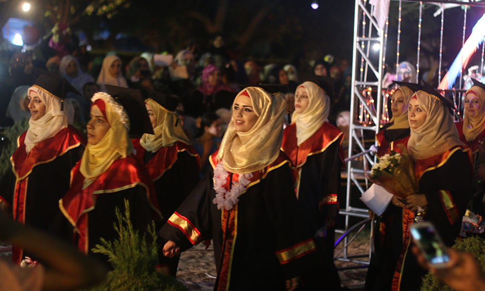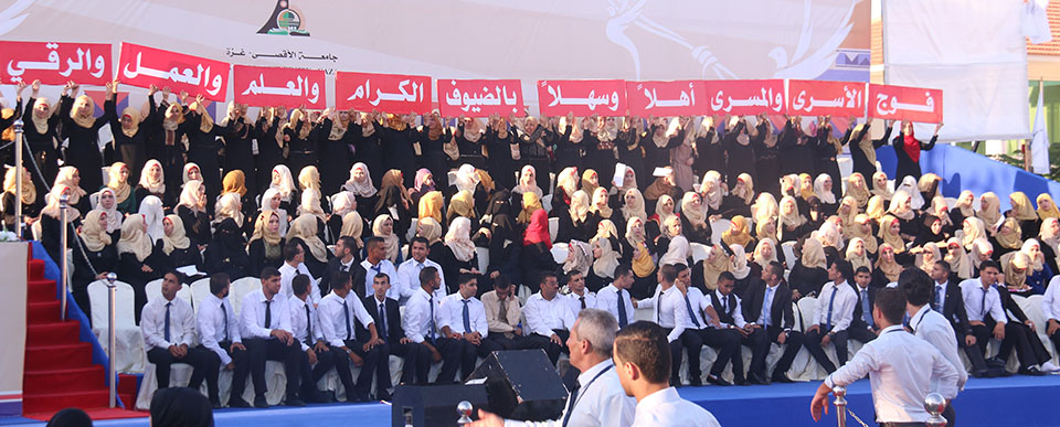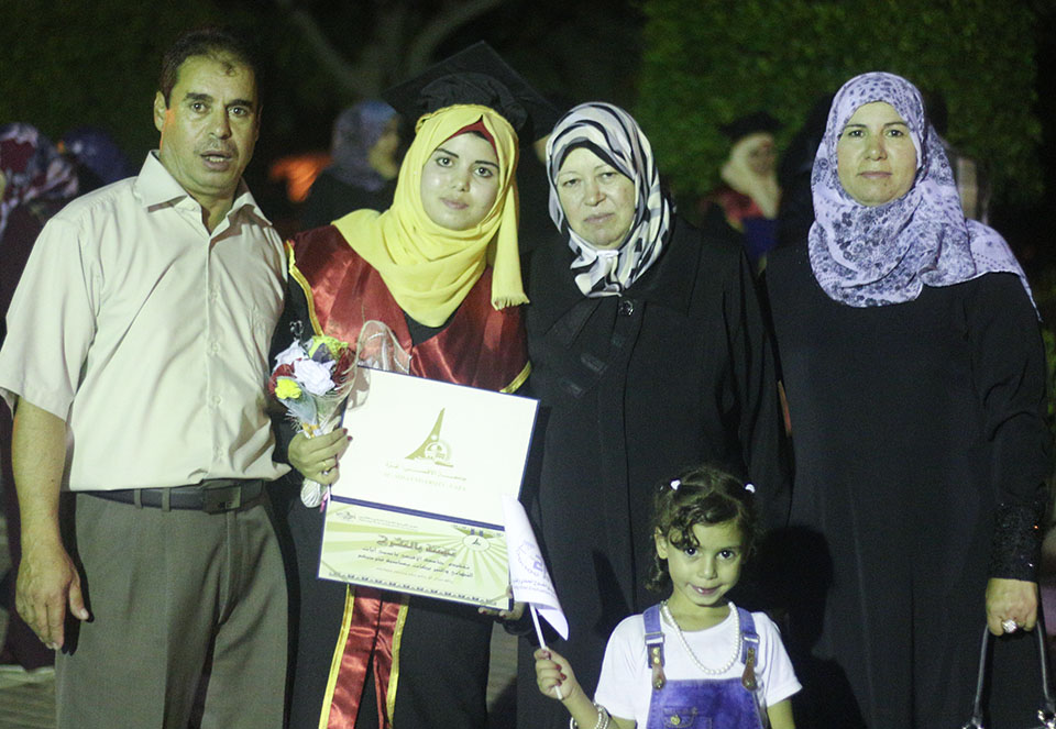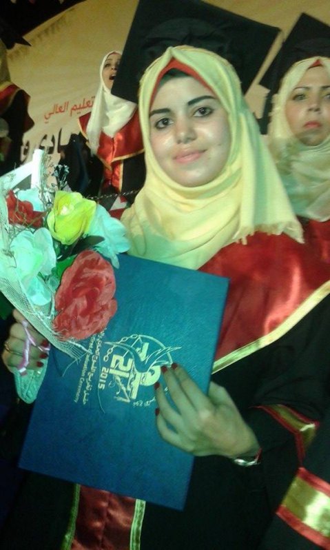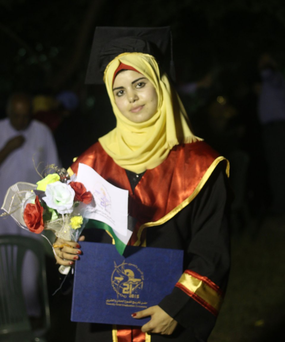 خان يونس- جامعة الأقصى- 30-08-2015- الفوج الحادي والعشرين- فوج الأسرى والمسرى- تخرج الطالبة عبير حمادة ربيع الأغا، تخصص لغة عربية وتربية إسلامية، بتقدير جيد جداً، وألف مبارك.