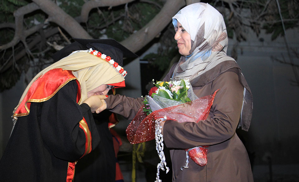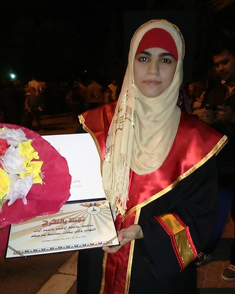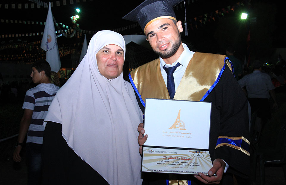 الخريجة نداء وليد جميل الأغا ووالدتها ،الخريجة آيات شعت زوجة شقيقها