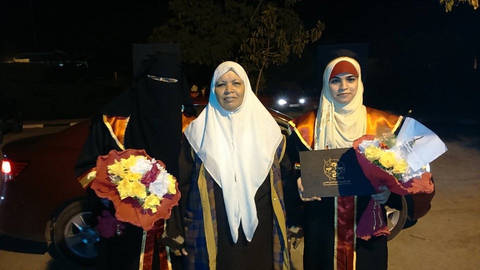 الخريجة ريم تتوسط خالتها إبتسام ووالدتها