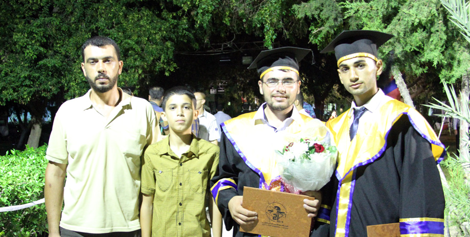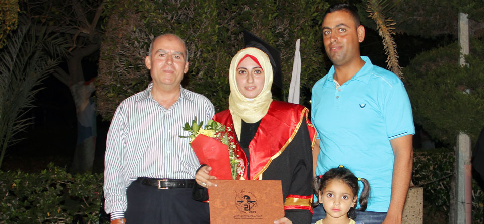 الخريجة نوال توفيق الأغا، أ. نافذ جبارة، أ. سعيد توفيق، أ. محمد توفيق