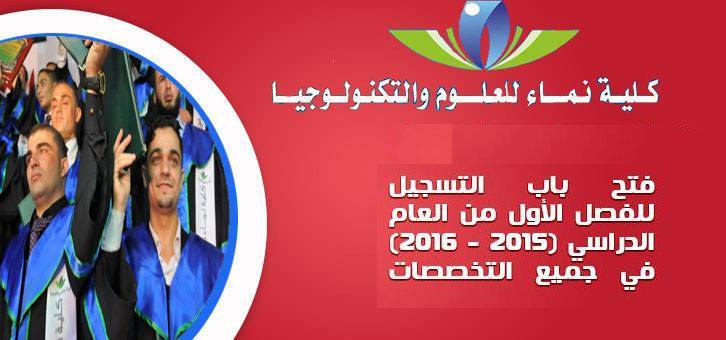 الرئيسة/متفرقات/كلية نماء للعلوم والتكنولوجيا متفرقات كلية نماء للعلوم والتكنولوجيا تاريخ النشر : السبت | 12-09-2015 | 19:00 7333 اضغط هنا للتواصل أو التعرف على أ. محمد حيدر جلال أحمد الأغا يمكنك تلقي أحدث الأخبار أول بأول بانضمامك لإحدى مجموعات الواتساب الخاصة بالعائلة من خلال الضغط هنـا اظهر المزيد