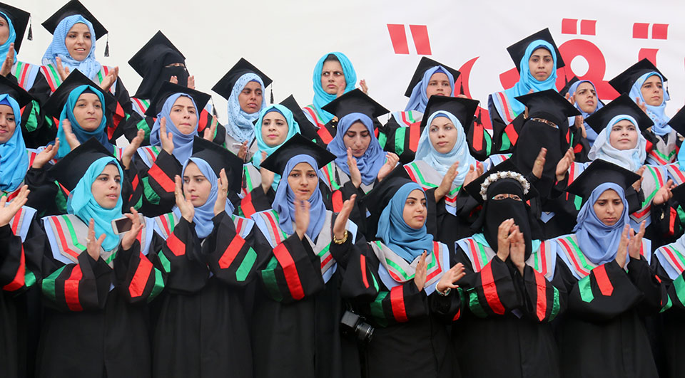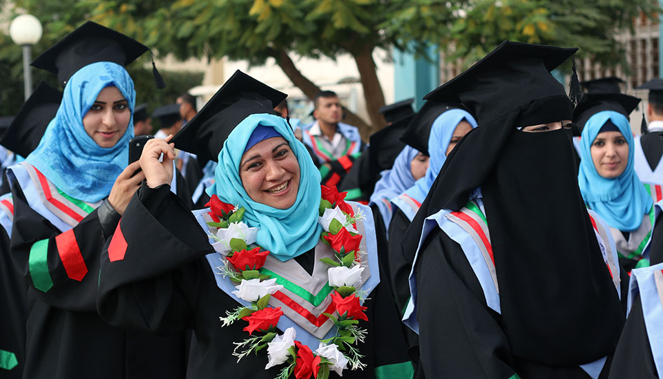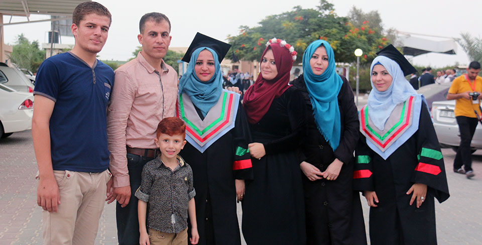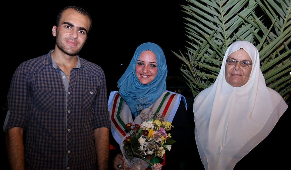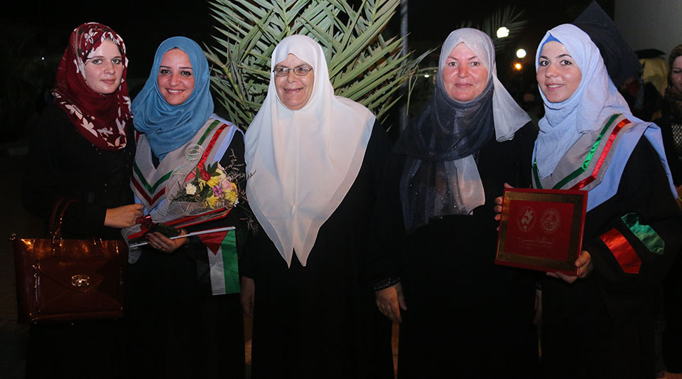 الخريجة إيمان صلاح الأغا ووالدتها، الحاجة أمنة صالح الأغا، الخريجة نفين الأغا