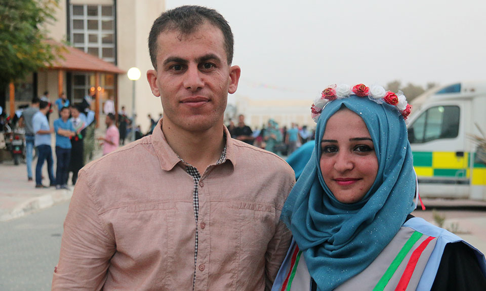 الخريجة نفين فضل الأغا وزوجها أ. عرفات يونس الأغا