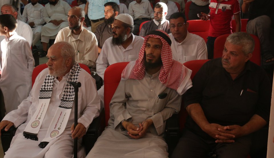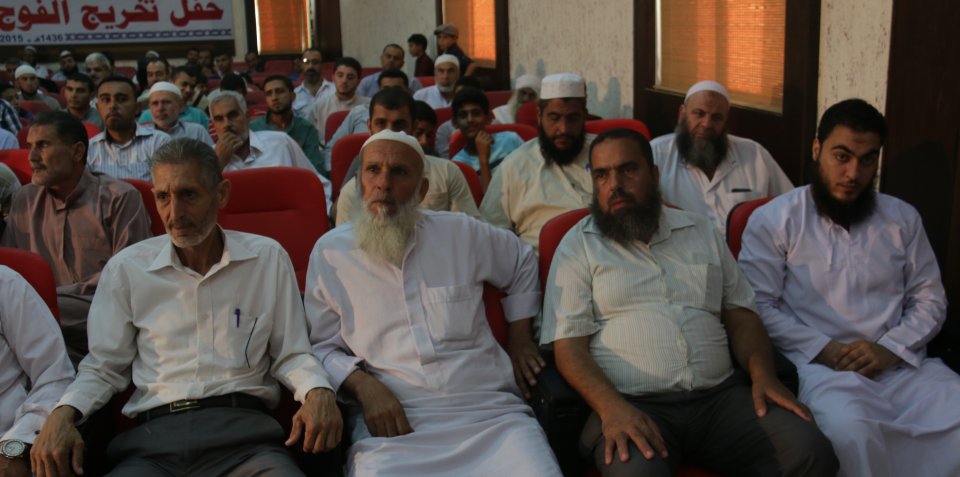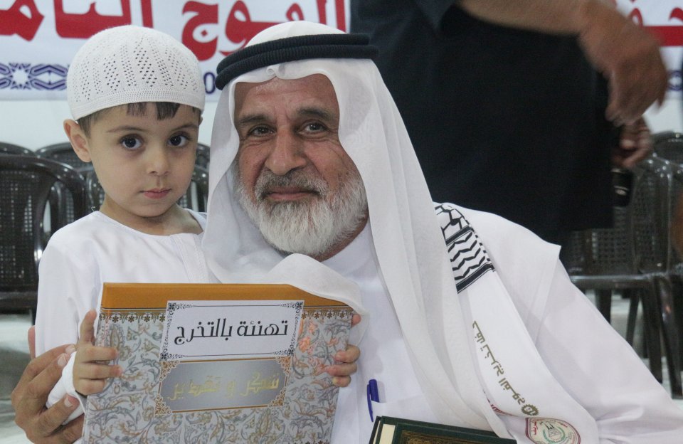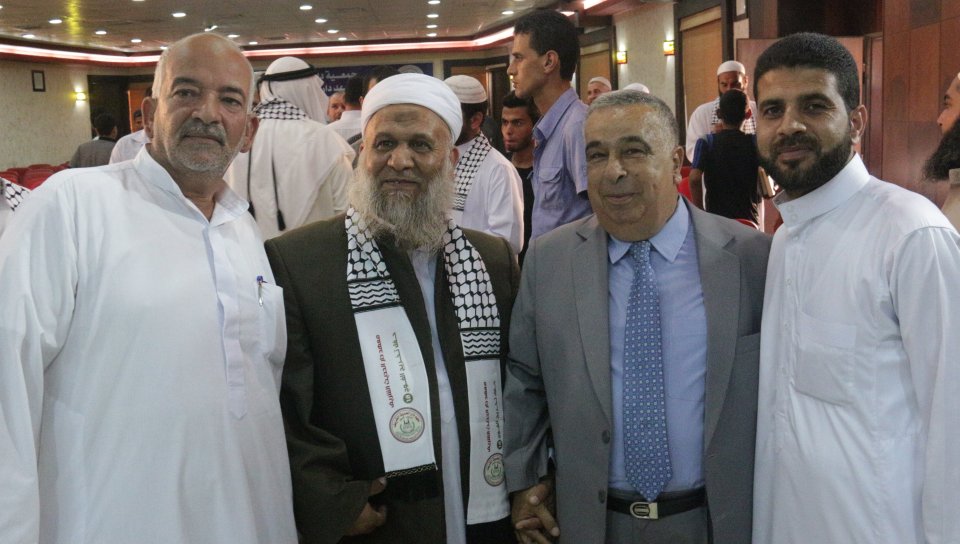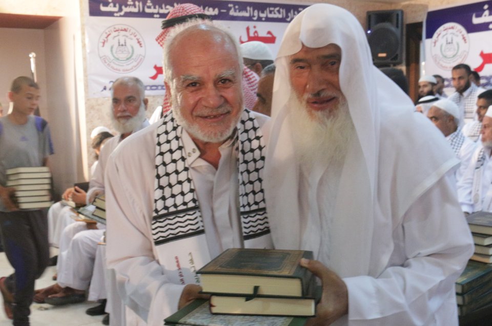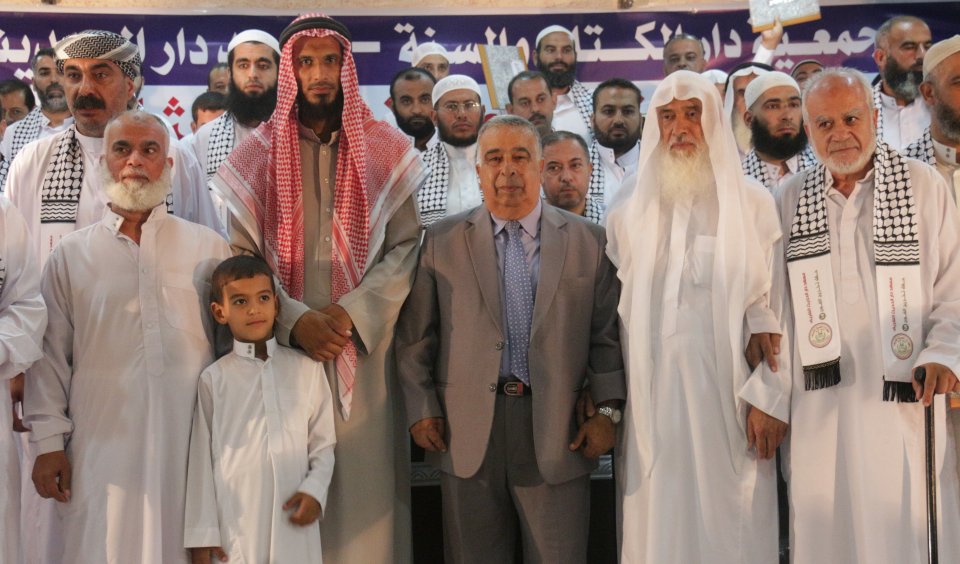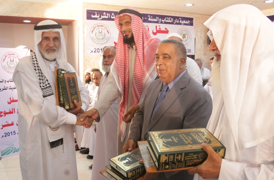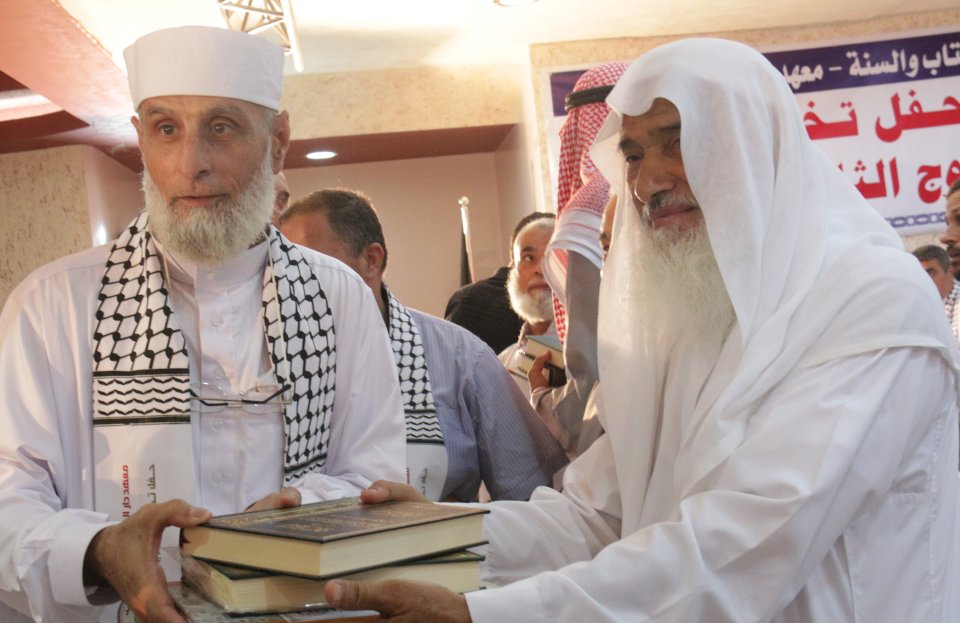الشيخ عبدالله المصري (رئيس جمعية دار الكتاب والسنة) وتكريم الخريج د. عدنان كامل الأغا