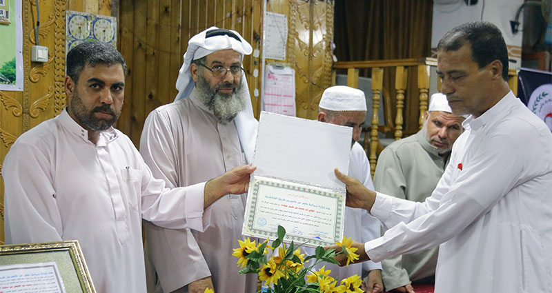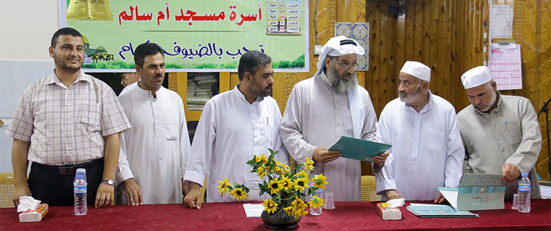 خان يونس- السطر الشرقي- مسجد أم سالم الأحد الموافق 13-09-2015- بحضور لفيف من الشيوخ والوجهاء، وممثلي عن دار القرآن الكريم والسنة وكذلك عن وزارة الأوقاف والشؤون الدينية بخان يونس وعدد من سكان الحي .