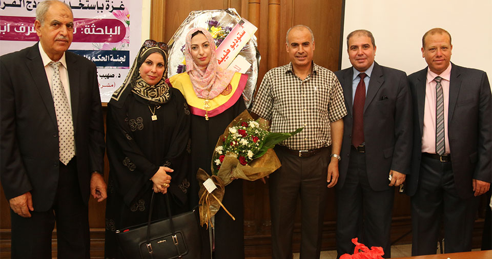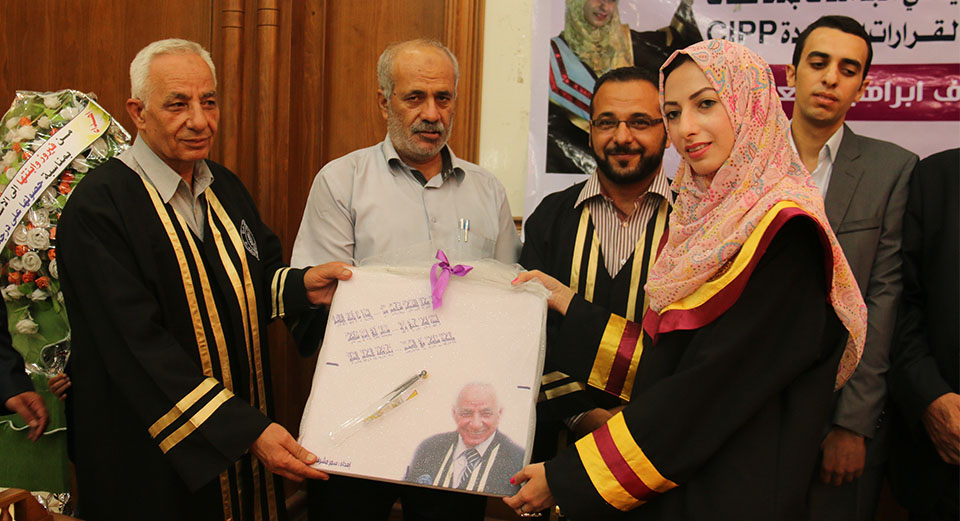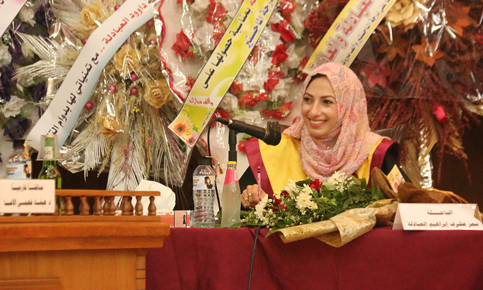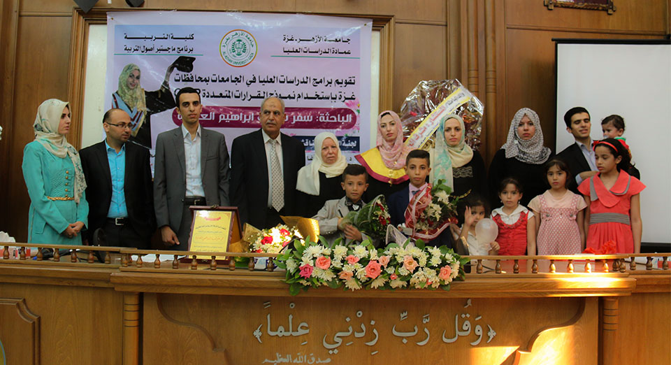 غزة- جامعة الأزهر- قاعة بيسان- الإثنين الموافق 21-09-2015- حصول الباحثة أ. سمر مشرف إبراهيم خالد العبادلة على درجة الماجستير من كلية التربية في قسم أصول التربية.
