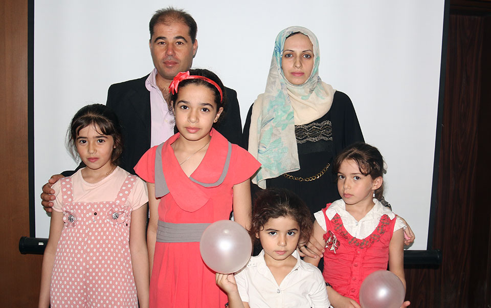 زوج الباحثة، د. ناصر جاسر الأغا، د. مروان سليم الأغا، الباحثة، أ. علا ياسين الأسطل، المستشار مشرف العبادلة(والد الباحثة)