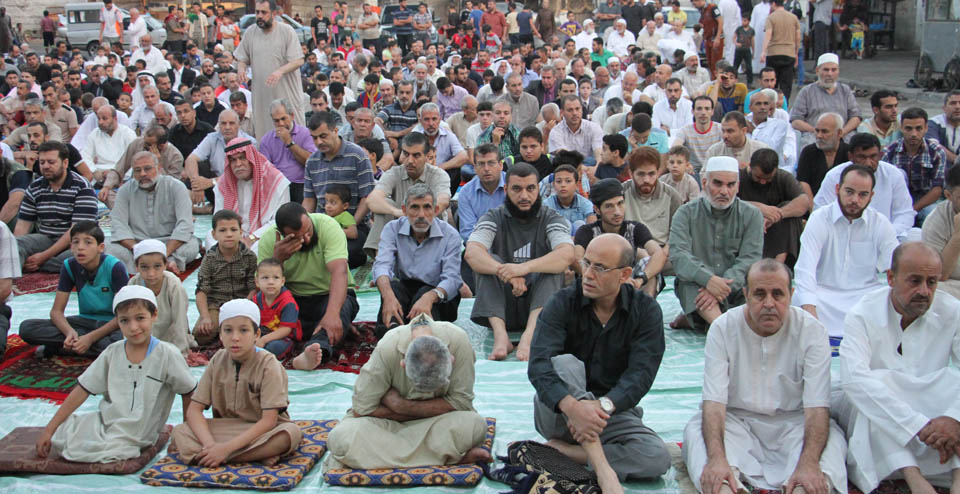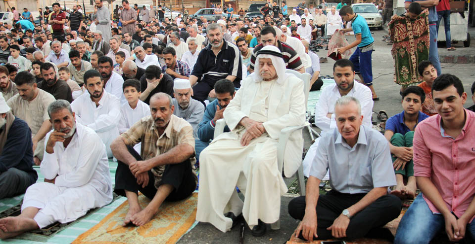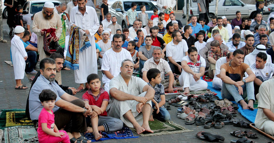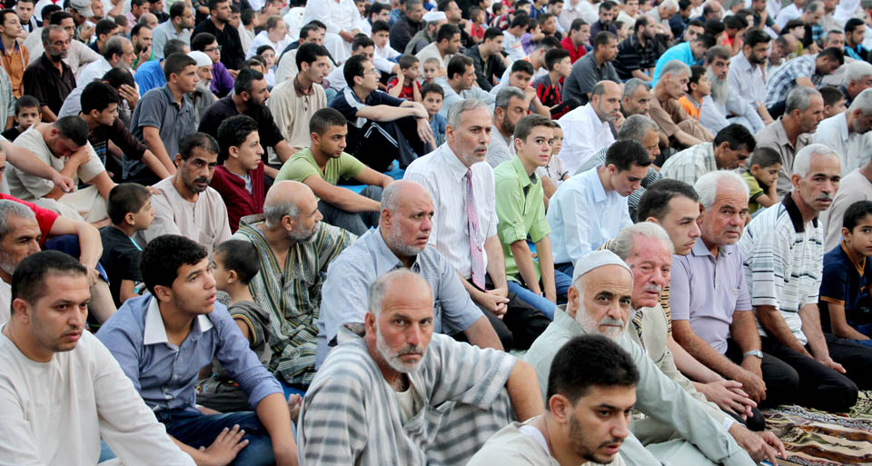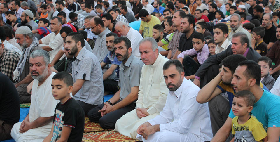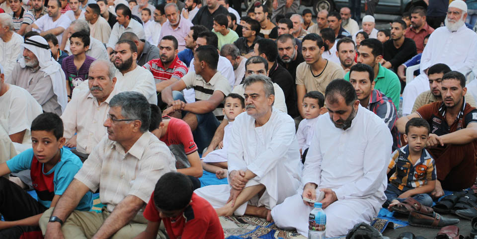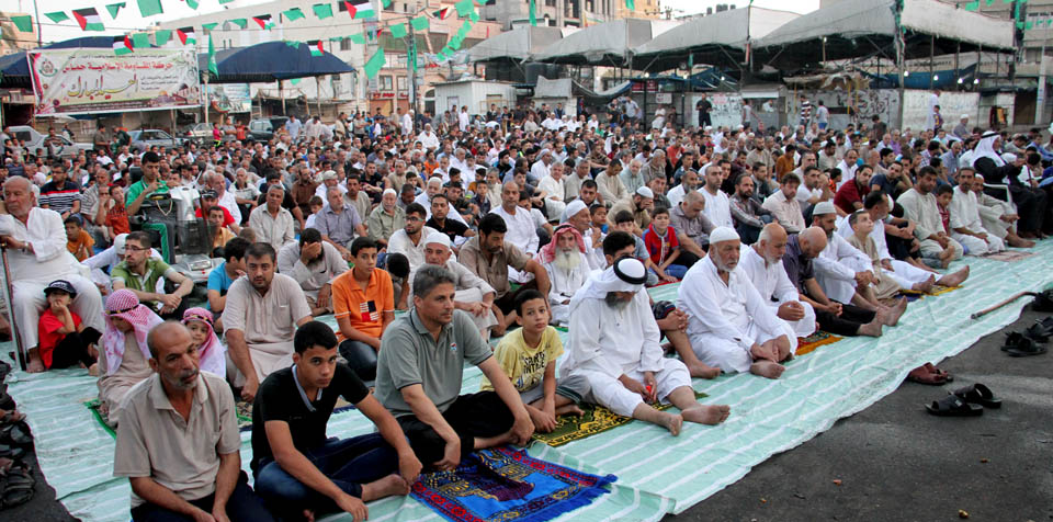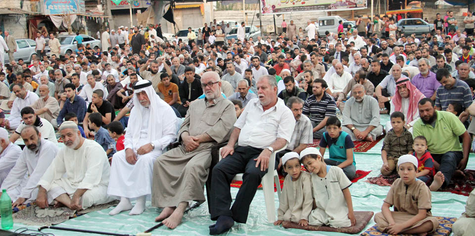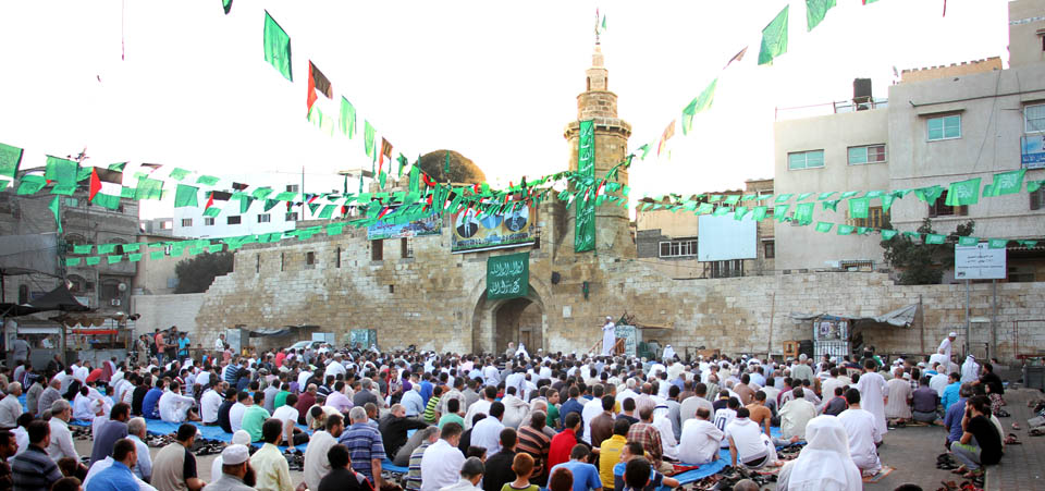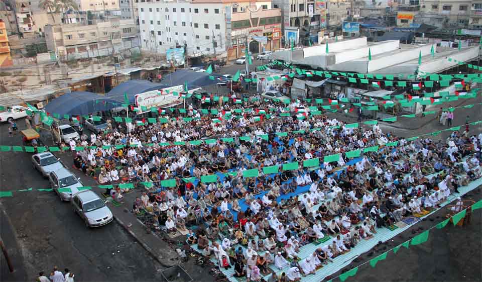 صور صلاة العيد في الساحة المقابلة لقلعة برقوق- وسط خان يونس