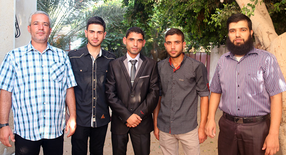 أ. علي عاطف الأغا، يحيى فتحي الأغا، العريس، إياد فوزي الأغا، السيد علي فتحي الأغا(شقيق العروس)