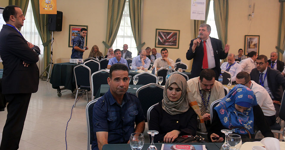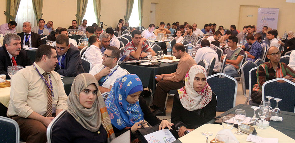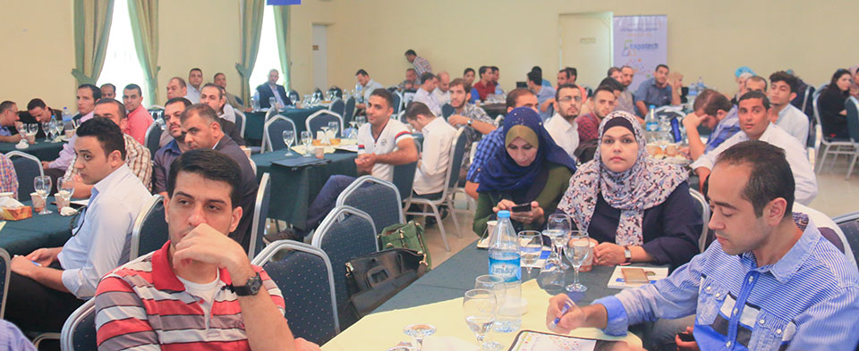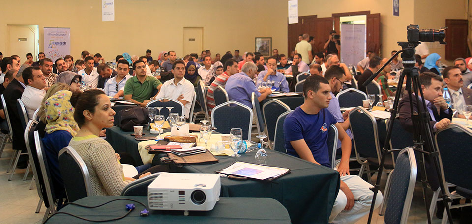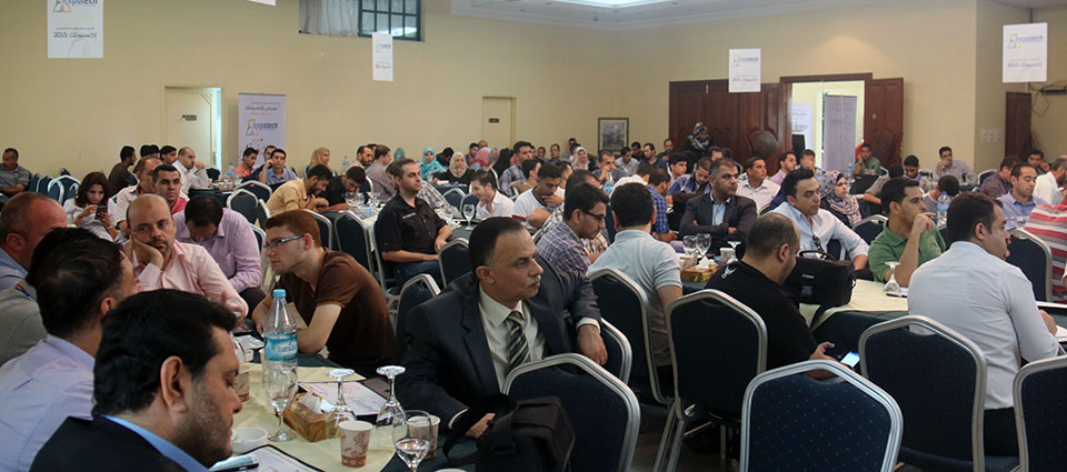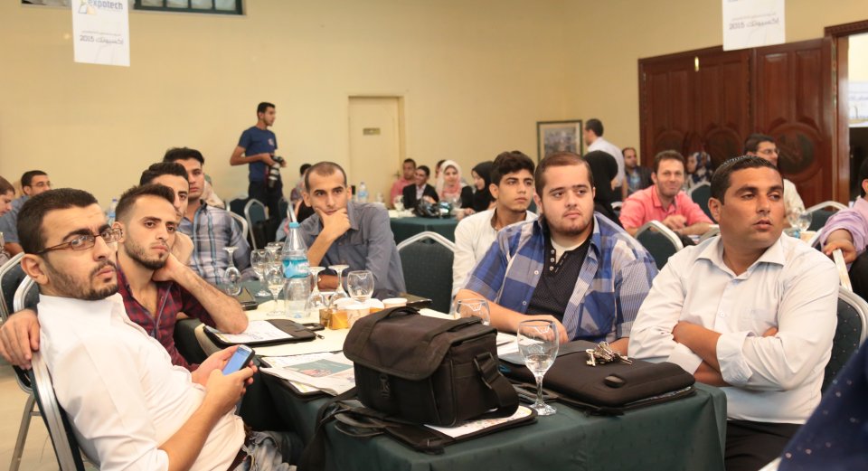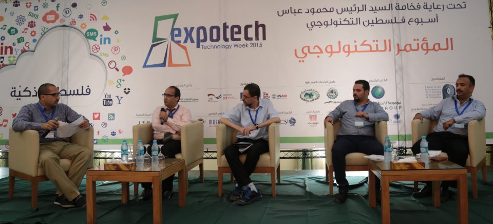 جلسة النقاش الأولى ضمن المؤتمر التكنولوجي اكسبوتك 2015 يدير الجلسة المهندس طارق اسليم. المتحدثين: المهندس اسماعيل حمادة ممثل عن وزارة الاتصالات