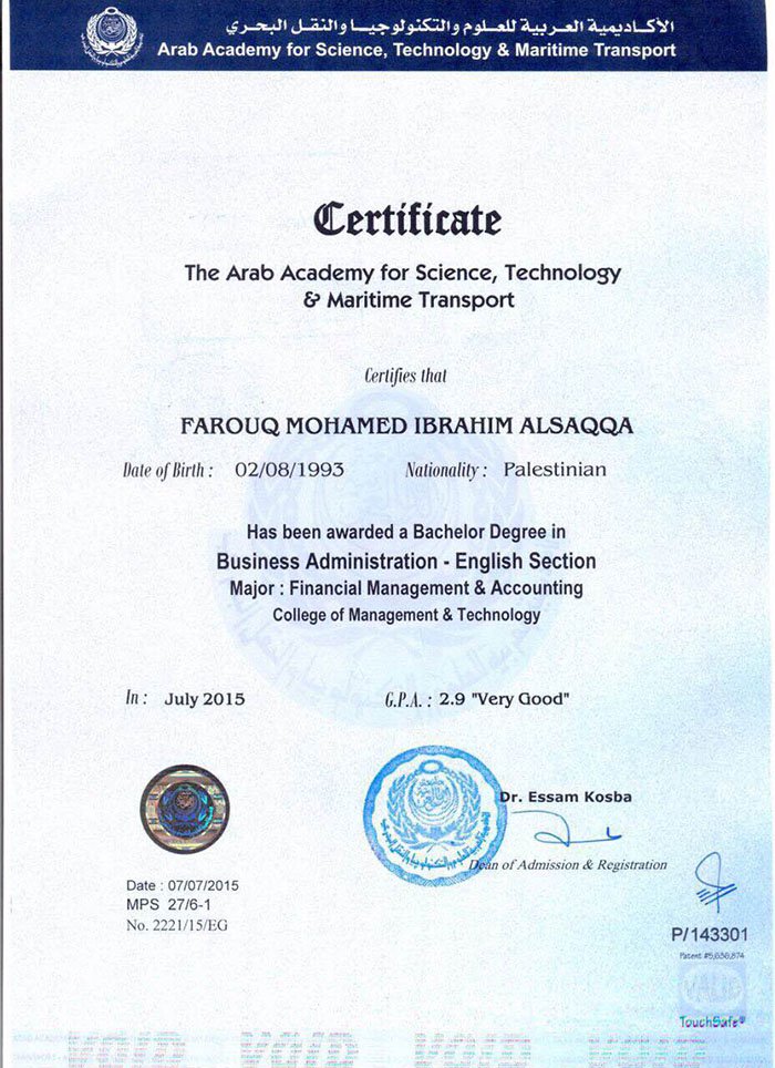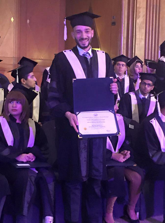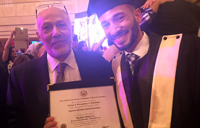 القاهرة- تخرج الطالب فاروق محمد إبراهيم محمد السقا في الأكاديمية العربية للعلوم والتكنولوجيا والنقل البحري كلية التجارة قسم إدارة الأعمال- اللغة الإنجليزية