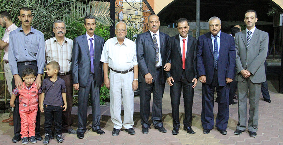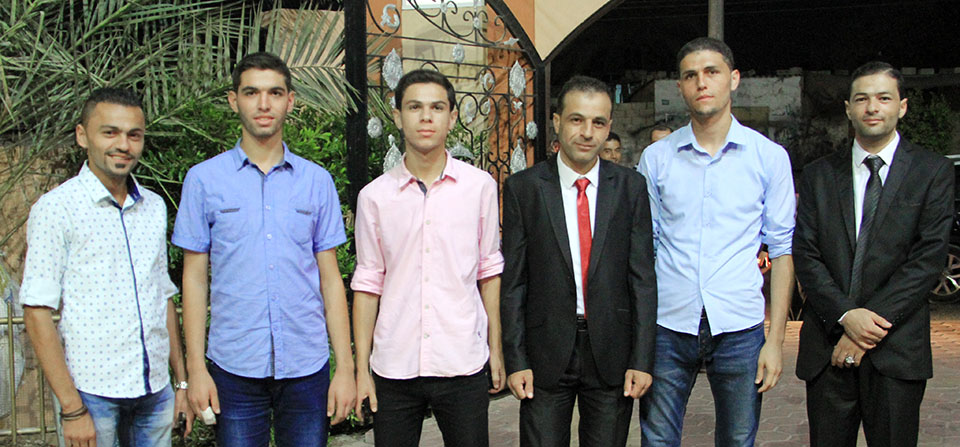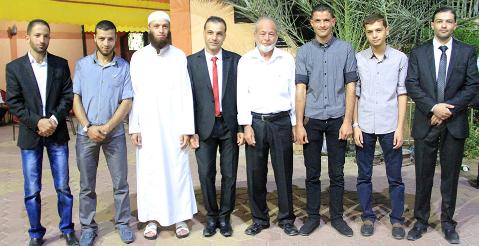 أ. رامي عمر الأغا، الوزير د. محمد رمضان الأغا، والد العريس، وليد، أ. عاطف عبدالرحيم وشقيقه عمر، أ. ممتاز،