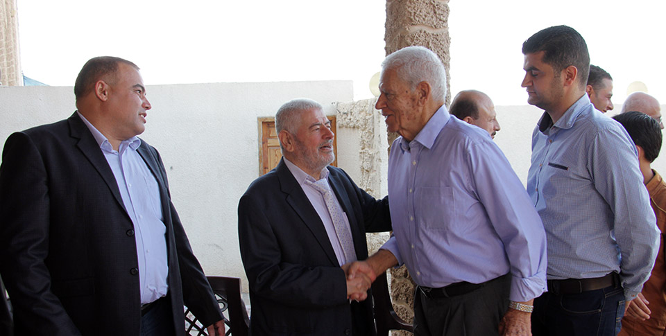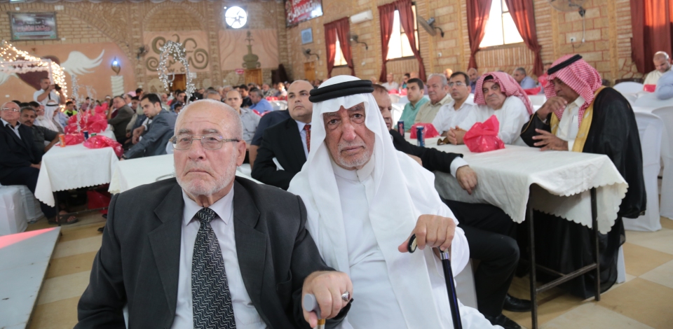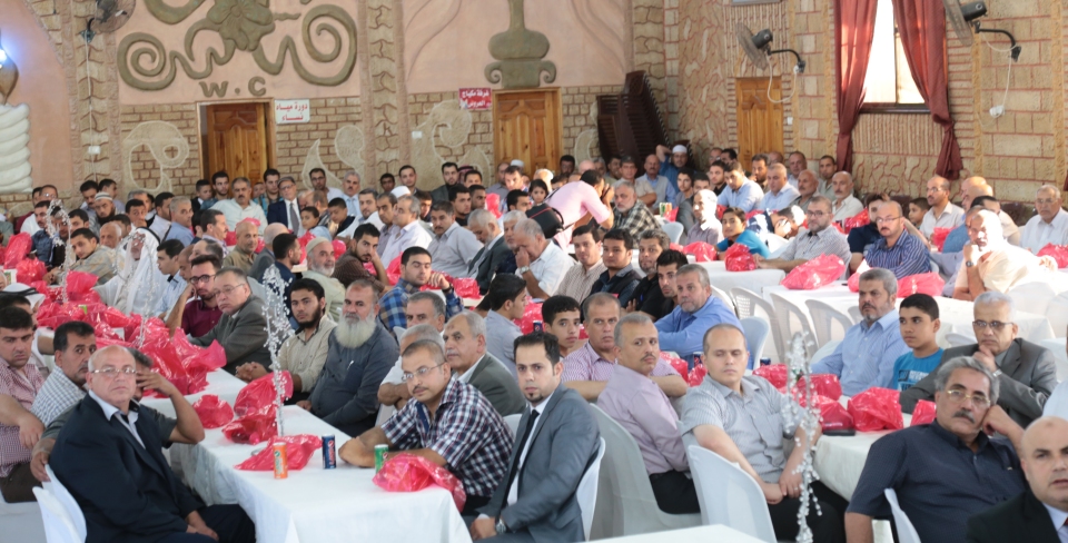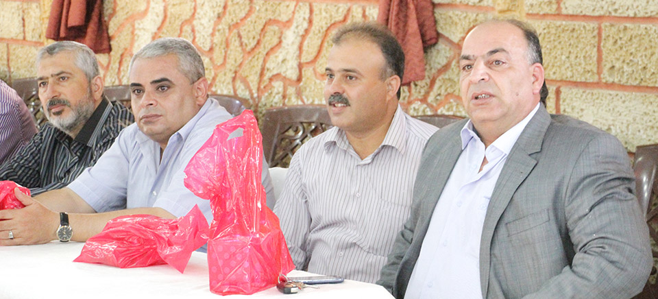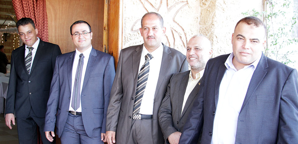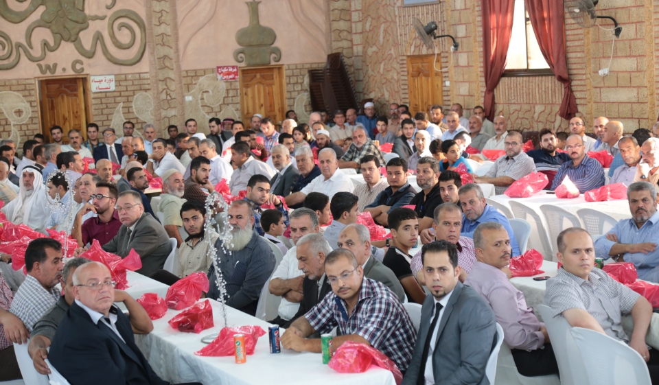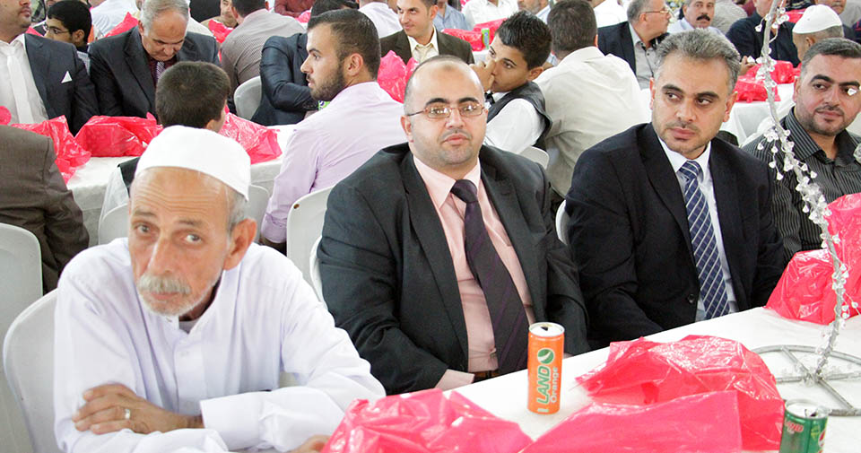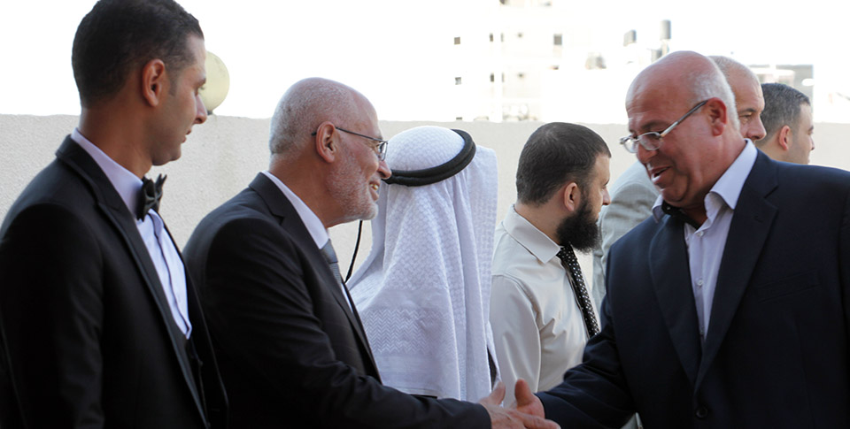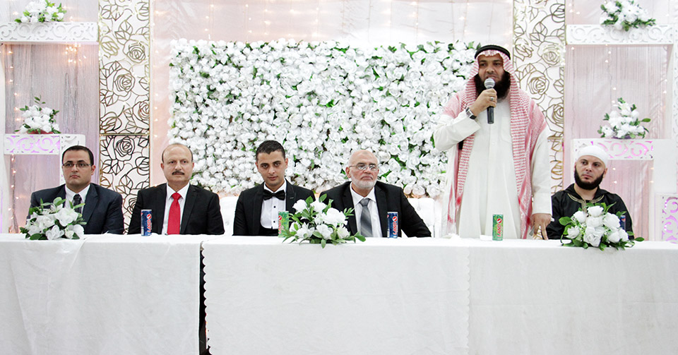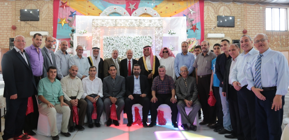 الشيخ محمود شراب وشقيقه الشيخ حمدان، والد العريس، العريس، والد العروس، م. محمد عبدالسلام الفرا