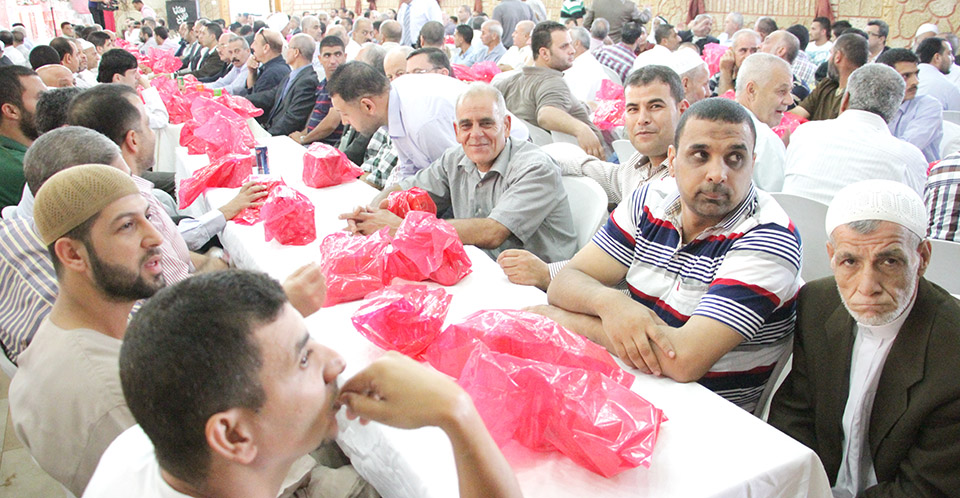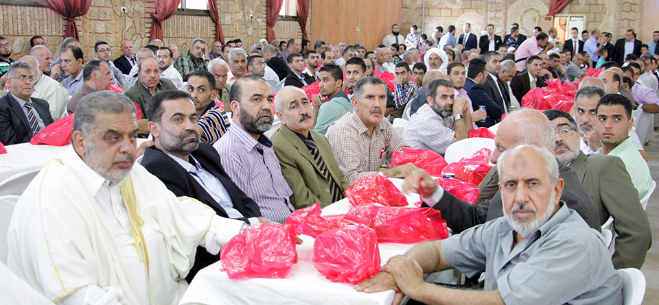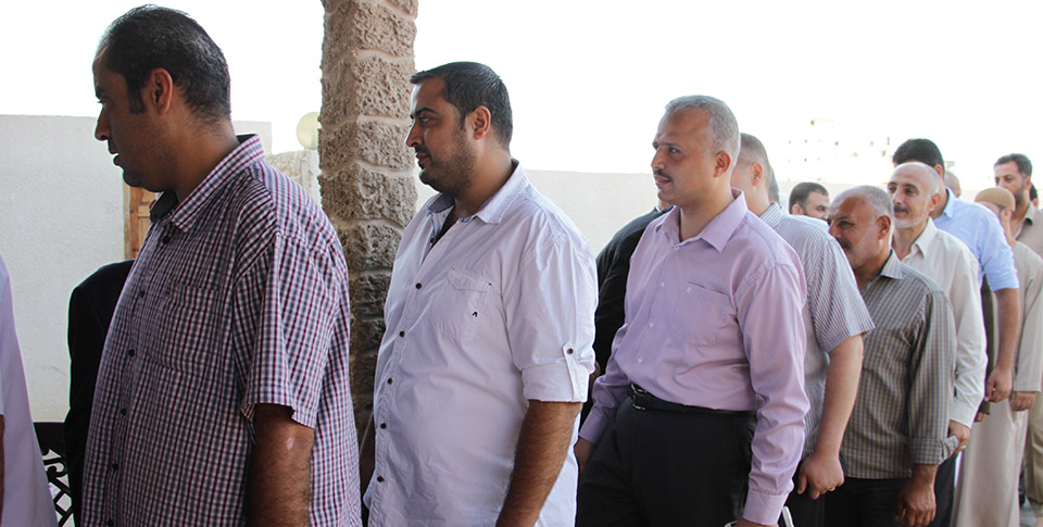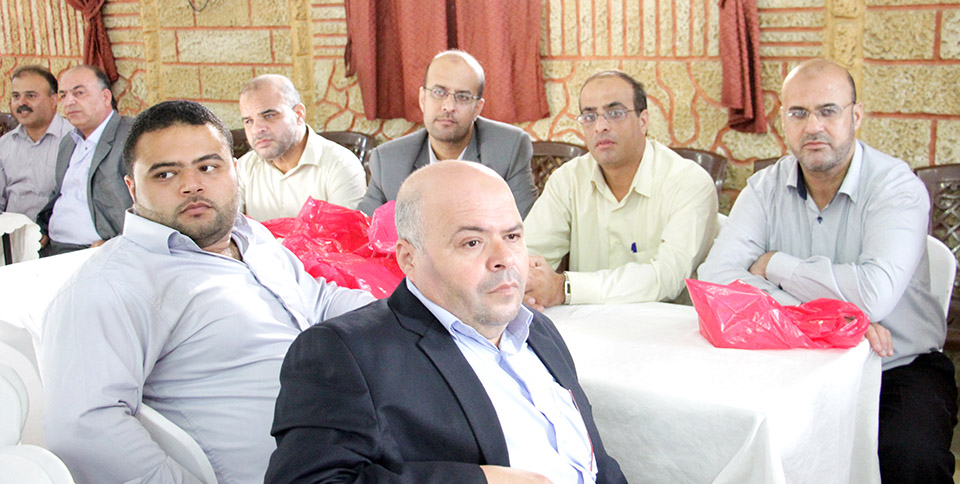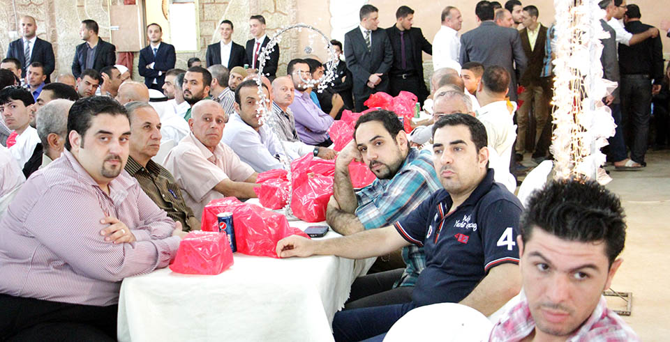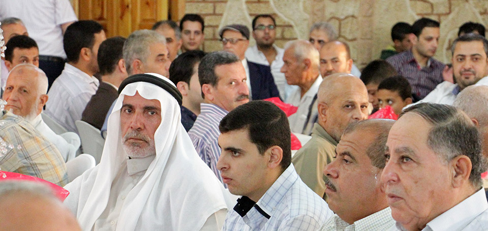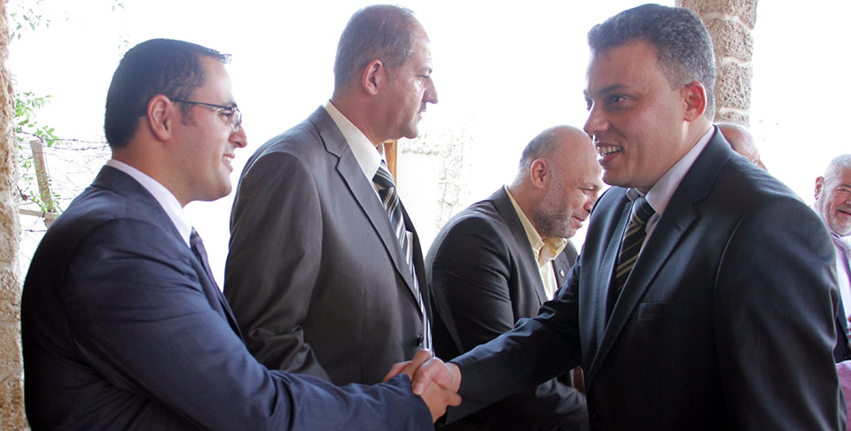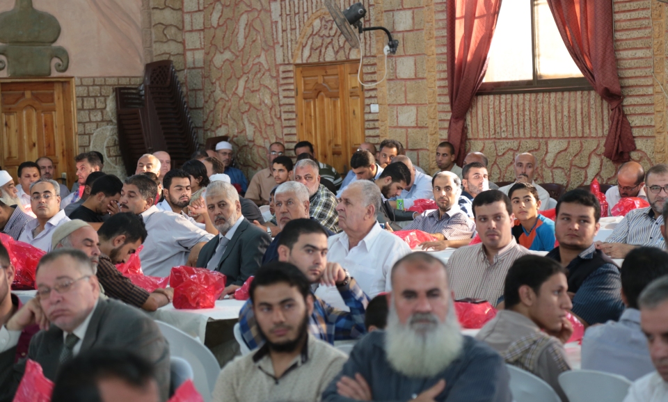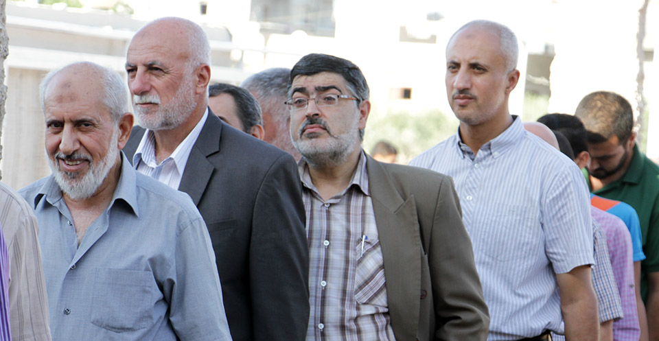 الشيخ محمود شراب وشقيقه الشيخ حمدان، والد العريس، العريس، والد العروس، م. محمد عبدالسلام الفرا