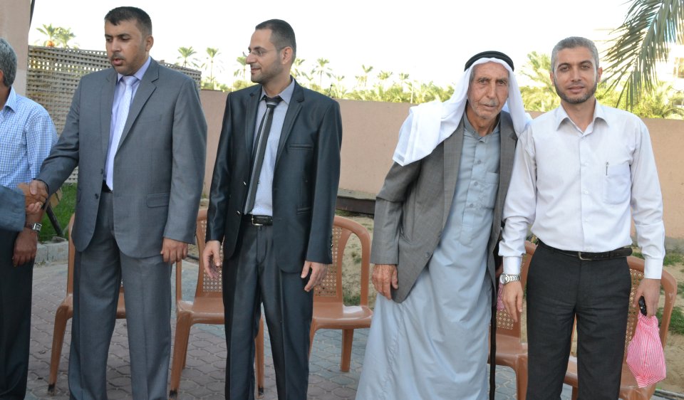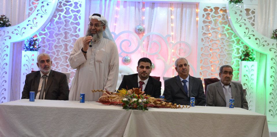 السيد شرار السقا (عم العريس)، الحاج محمد السقا (والد العريس)، العريس، الشيخ عبدالباسط الاسطل، السيد سعيد السقا (والد العروس)