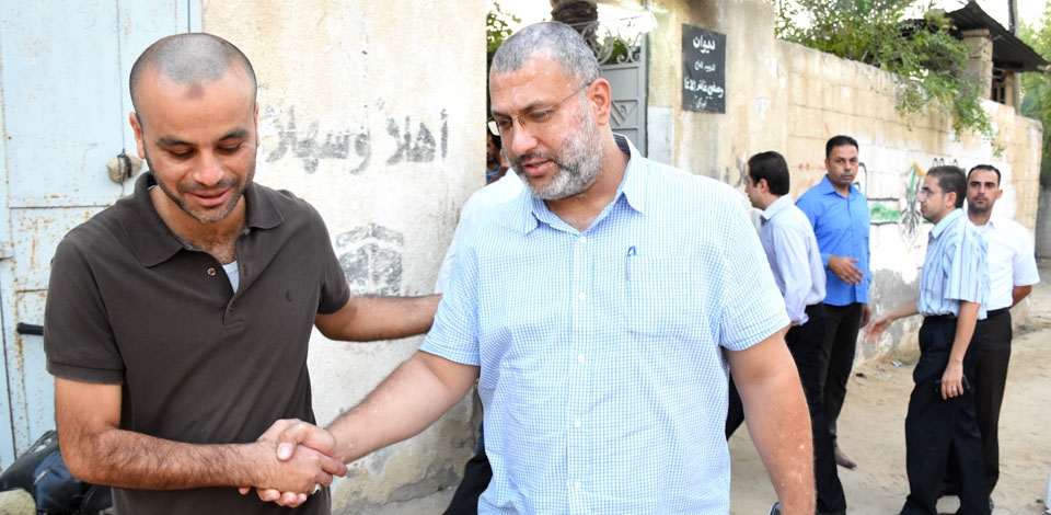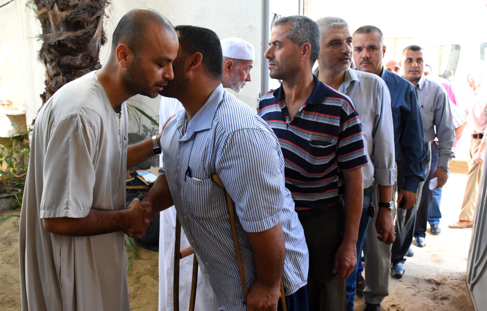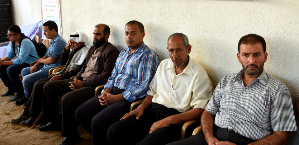 أ. عمر العزايزة(المدير الإداري لجمعية الهلال الاحمر الفلسطيني بقطاع غزة)، أ. محمد(شقيق الفقيد)