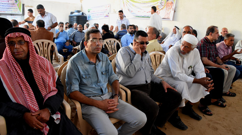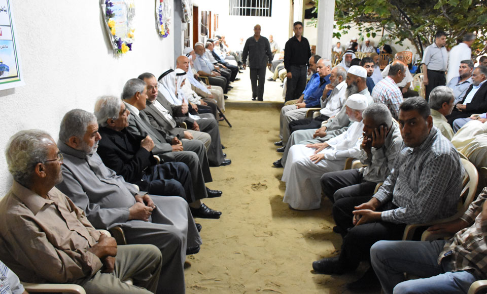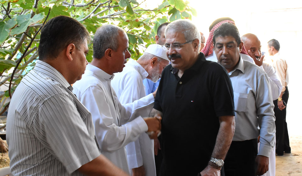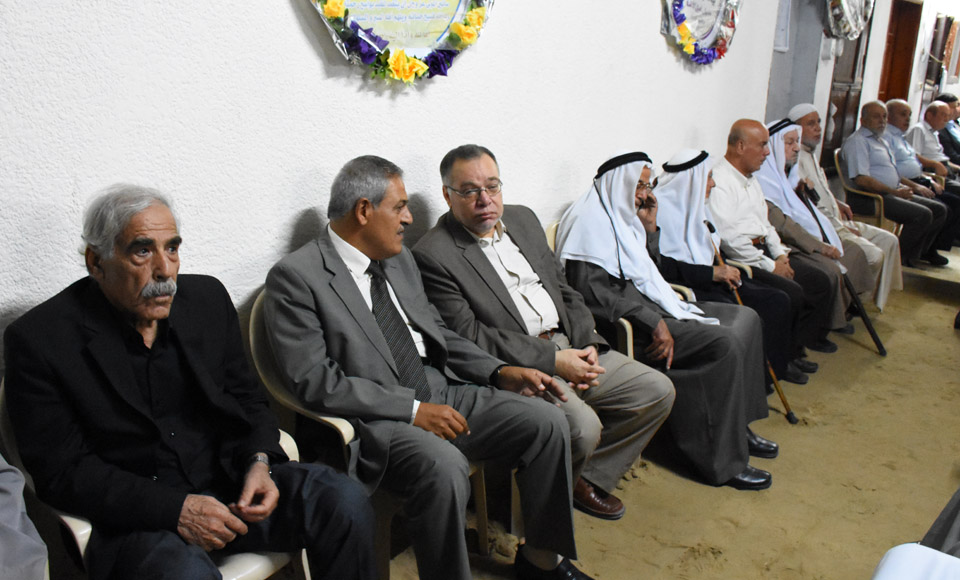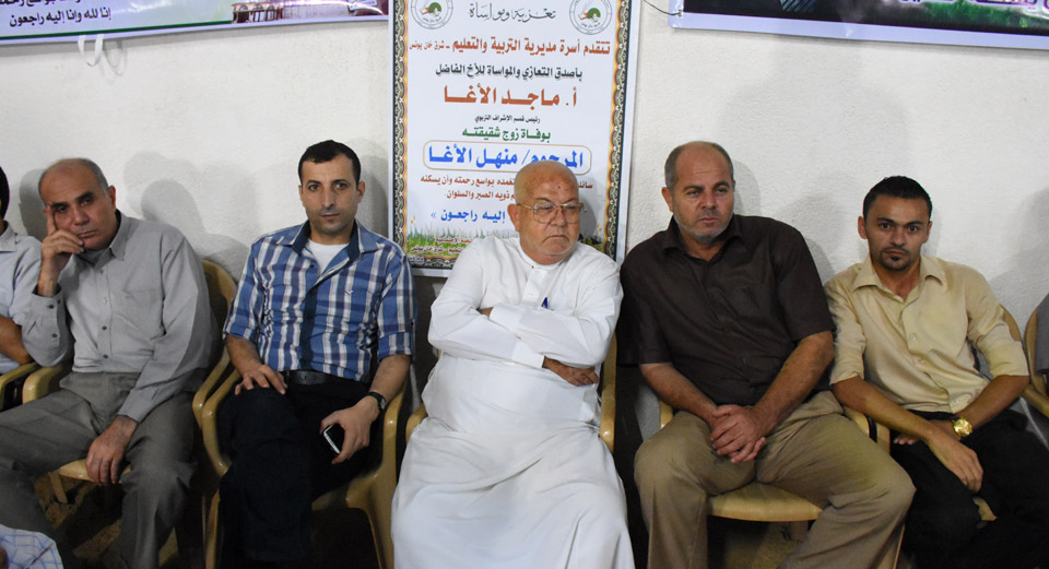 أ. صالح عبدالله الأغا(ابن خال المرحوم)، أ. مسعود(شقيق المرحوم)، أ. محمد(شقيق المرحوم)، د. أحمد الشيبي (محافظ خان يونس)