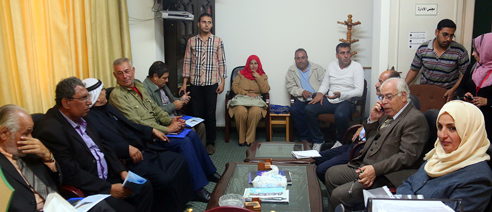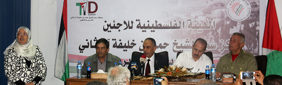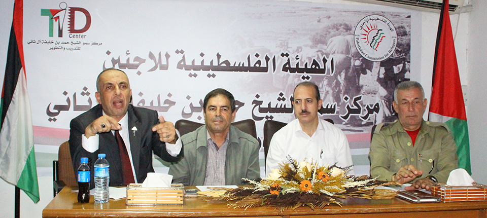 المختار اللواء نادر عبدالعزيز المصري أبو العز، أ. عصام المدهون (هيئة اللاجئين)، د. جمال أبو نحل، م. عصام طبازة ، د. نائلة الأغا