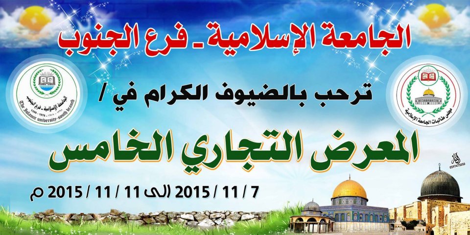خان يونس- السبت 11-7-2015- بحضور رئيس الغرفة التجارية بمحافظة خان يونس، تم إفتتاح المعرض التجاري الخامس على أرض الجامعة الإسلامية فرع الجنوب، ويستمر المعرض حتى يوم الأربعاء الموافق 11-11-2015.