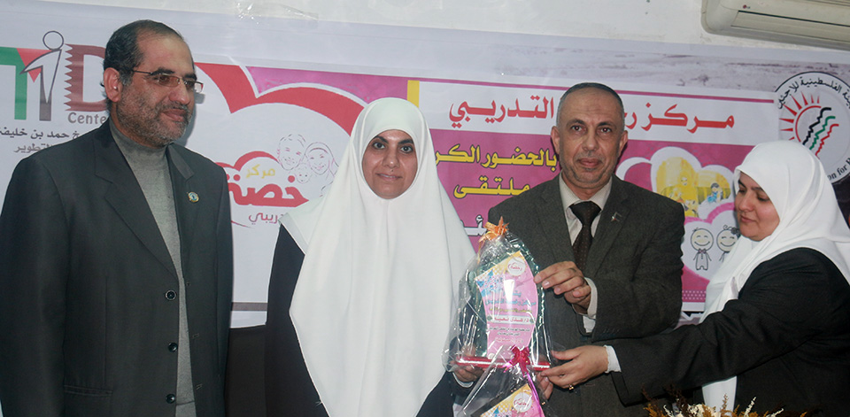 أ. ياسمين الهسي، أ. هناء المعصوابي (فريق رخصة)، أ. فاطمة أبو حية (صحفية من جريدة فلسطين)،أ. غادة ابوالقمبز (مديرة مركز حمد للتدريب والتطوير)