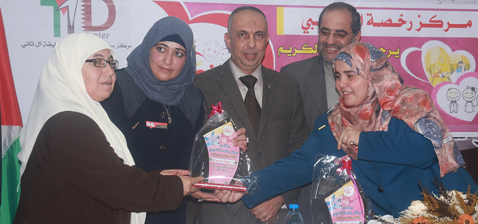 أ. سمية ابو حية (فريق رخصة)، أ. ريم محمد جعرور (عريفة الحفل)ووالدتها المربية الفاضلة أم عطا جعرور)، أ. رشا محمد جعرور (فريق رخصة)، المختارة فاتن حرب