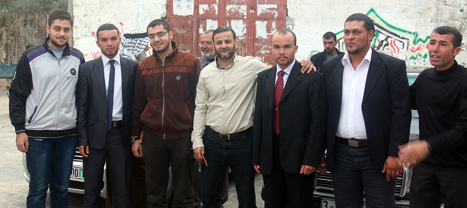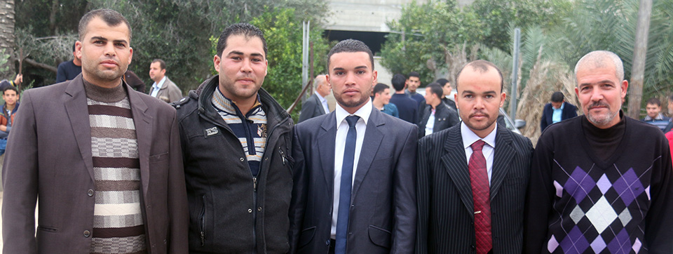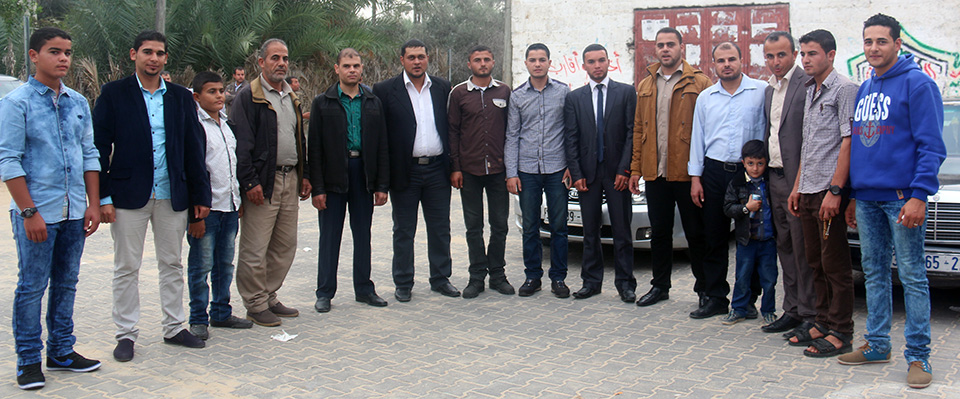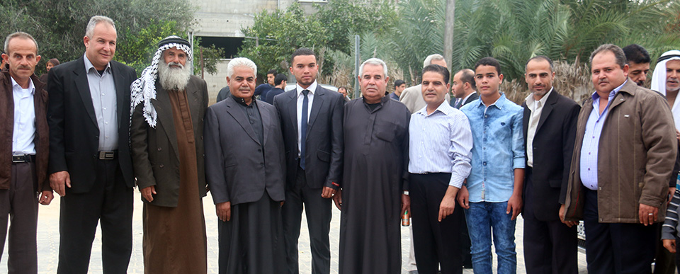 السيد أسامة(عم العروس)، تيسير إبراهيم الأغا، محمد(شقيق العروس)، أ.هشام وشقيقه الحاج عمر(عما العروس)، العريس، والد العروس