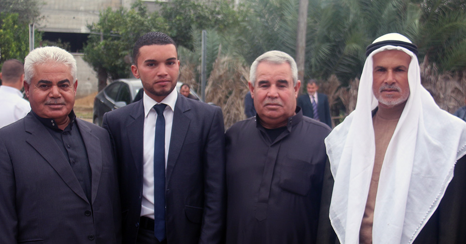 يحيى زكريا الأغا(شقيق العريس)، الحاج محمد زكريا الأغا(عم العريس)، الحاج سعيد أحمد الأغا، أ. يحيى فضل الأغا(عم العريس)