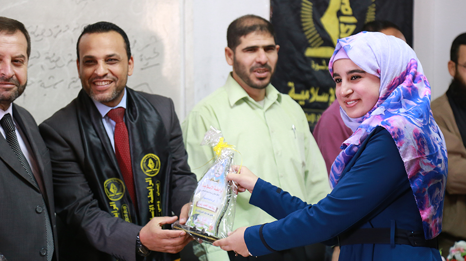 كرمت الرابطة الاسلامية اليوم الأثنين16/11/2015 طلبة الامتياز في جامعة الأمة بفرع الجنوب وذلك خلال احتفال في قاعة المؤتمرات الكبرى بعنوان " رجال القدس الأبية ستهزم البنادق العبرية " ، وذلك بحضور عميد الجامعة وأعضاء مجلس الطلبة ورئيس شؤون الطلبة، والقيادى فى حركة الجهاد الاسلامى الأسير المحرر مصعب البريم والأستاذ خالد الشيخ عيد وقيادة الهيئة الأدراية للرابطة بالمحافظة، وحشد كبير من الطلبة ، وذوى الطلاب المتفوقين .