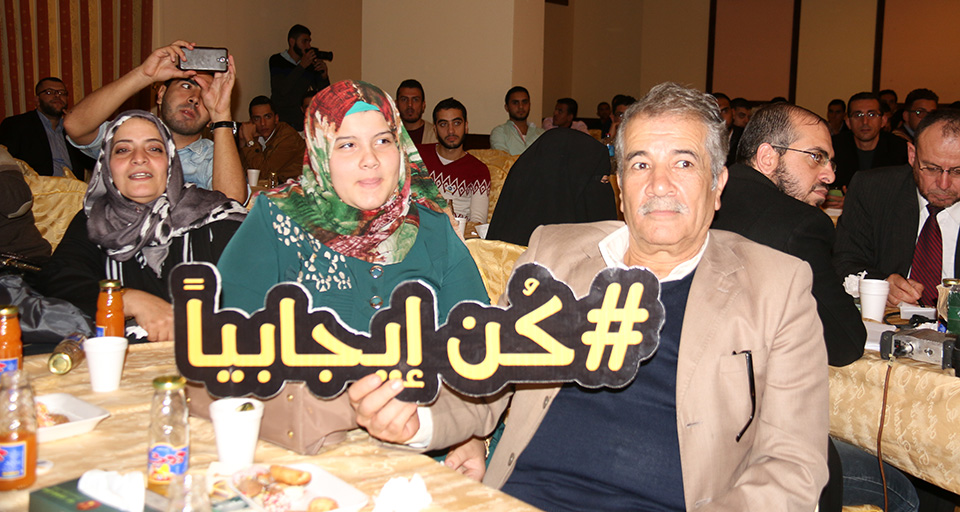 غزة- فندق الكومودور- الإثنين 23-11-2015- نظم فريق فضاء غزة مؤتمراً بعنوان كن إيجابياً +B ، والذي يهتم بتعزيز المفاهيم والطاقة الإيجابية وطمس الطاقة السلبية لدى الشباب في القطاع وذلك من خلال نقل الشباب من الرادار السلبي بالتفكير إلى الإيجابي ، بتسليط الضوء على تجارب شبابية ناجحة تحدت وواجهت الظروف القاهرة في القطاع ونجحت في تحقيق أهدافها وطموحها ، وألقى المؤتمر بظلاله على 400 شخص داخل قاعة الكومودور ليكونوا عبارة عن كواكب مضيئة داخل القطاع ليعززوا الطاقة الإيجابية بالعدوى ما بين الشباب .