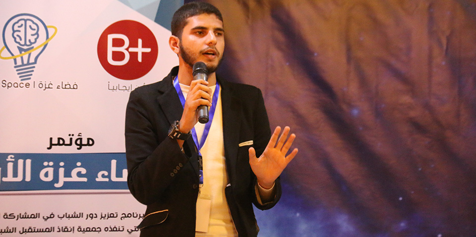 أما المهندس محمد النخالة وهو أحد أعضاء فريق فضاء غزة عن الطاقة السلبية وكيف لها أن تكون بداية لإنطلاقة الشباب بالتفكير وتحدي الظروف وذلك بإستغلال تلك الطاقة بالمفهوم العكسي لها والتحفيزي ، كما تحدث عن دور أعضاء الفريق الذين ساهموا في نجاح هذه الفعالية مثمناً دور المنظمين والمتطوعين في تلك الفعالية