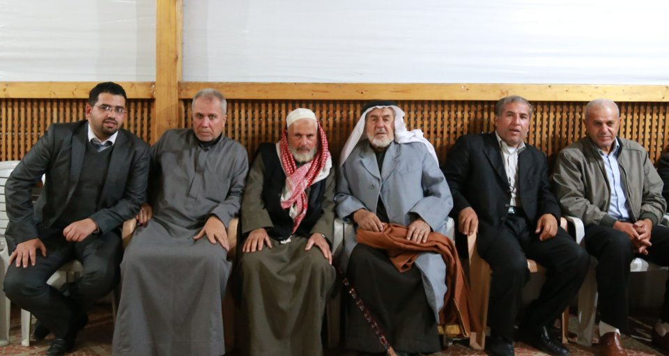 عطا مصلح وافي، المختار سفيان وافي، جدالعريس، والد العروس، الحاج محمد سعيد الاغا وصهره م. علي جمعة وافي