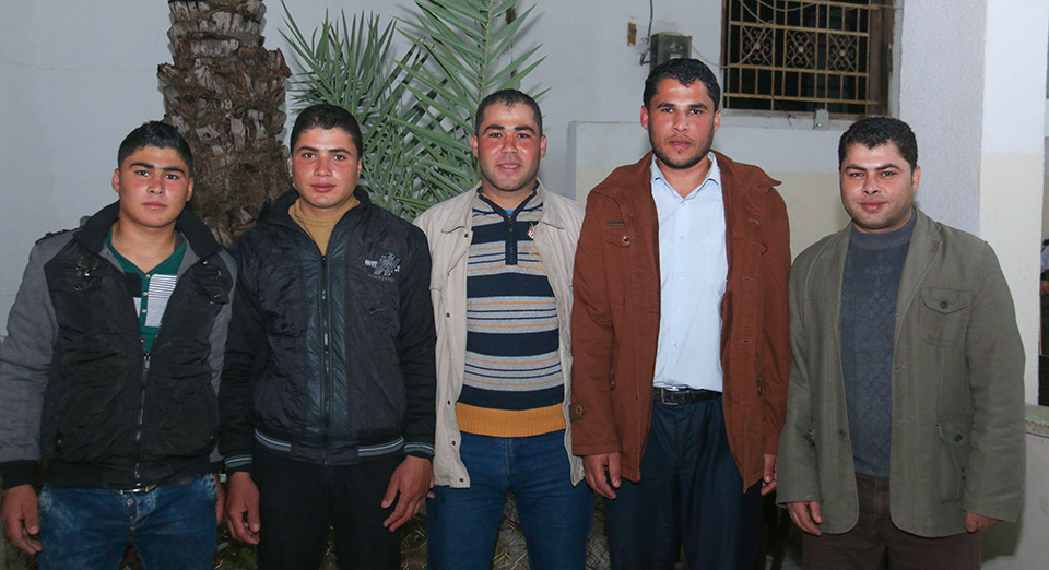 أ. عاهد محمد الأغا، أ. يحيى سليمان الأغا، العريس، إسماعيل النجار(شقيق العروس)