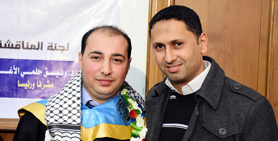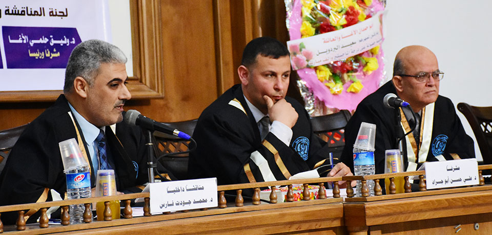 أعضاء لجنة المناقشة:د. علي حسن أبو جراد، د. يوسف عبد بحر، د. وفيق حلمي الأغا،