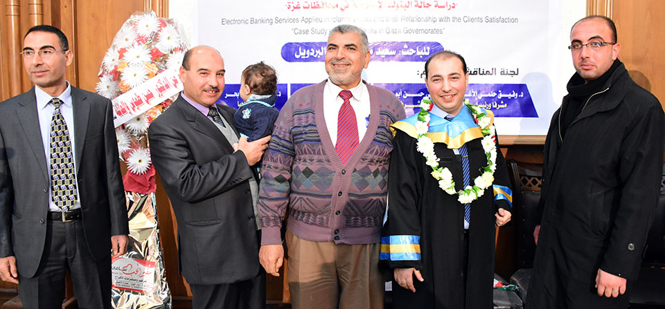 قاعة بيسان- جامعة الأزهر غزة، الأحد الموافق 06-12-2015، الباحث سعيد محمد سعيد البردويل ينال درجة الماجستير في الإدارة المالية بعنوان: