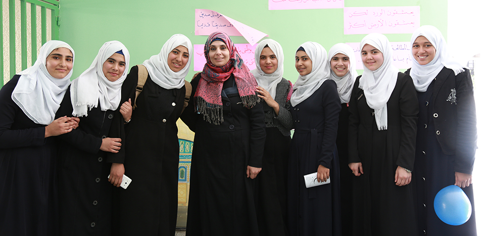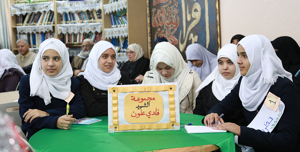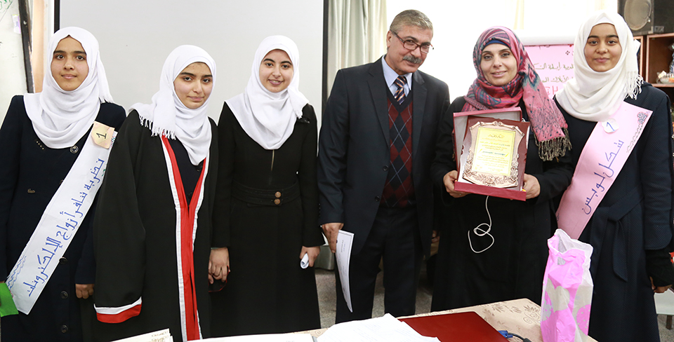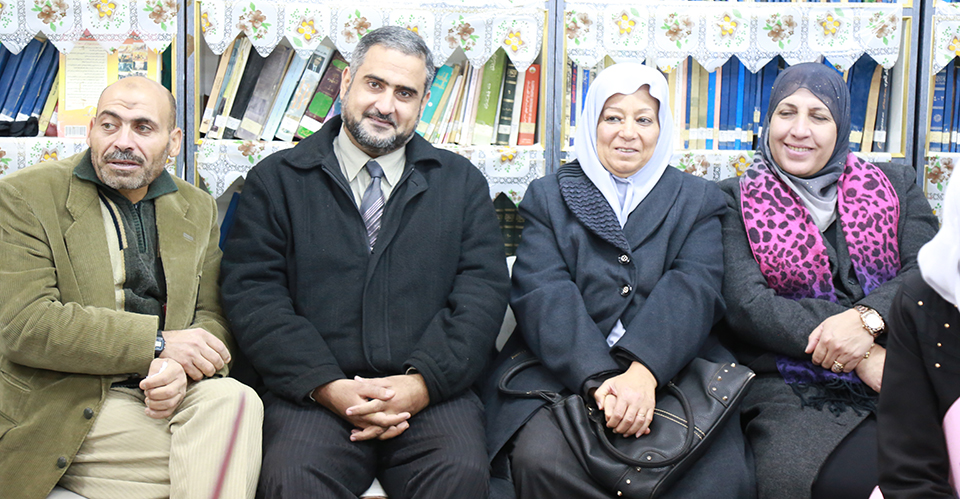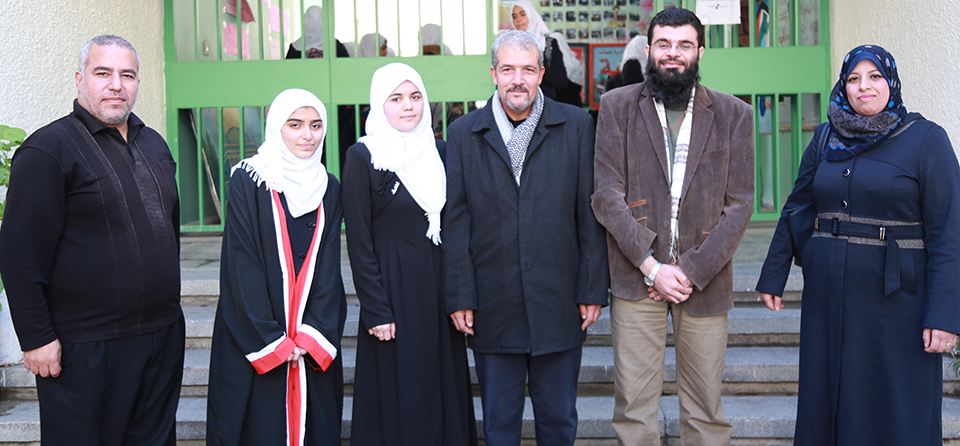 أ. يسرى بدر، أ. حمدان الأغا، الحاج محمد صالح الأغا وكريمته أية، هيا بسام وعمها أ. ياسر محمد الأغا