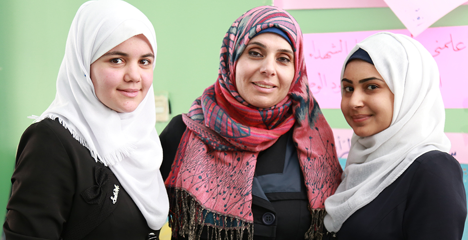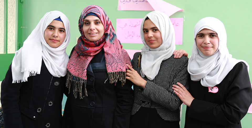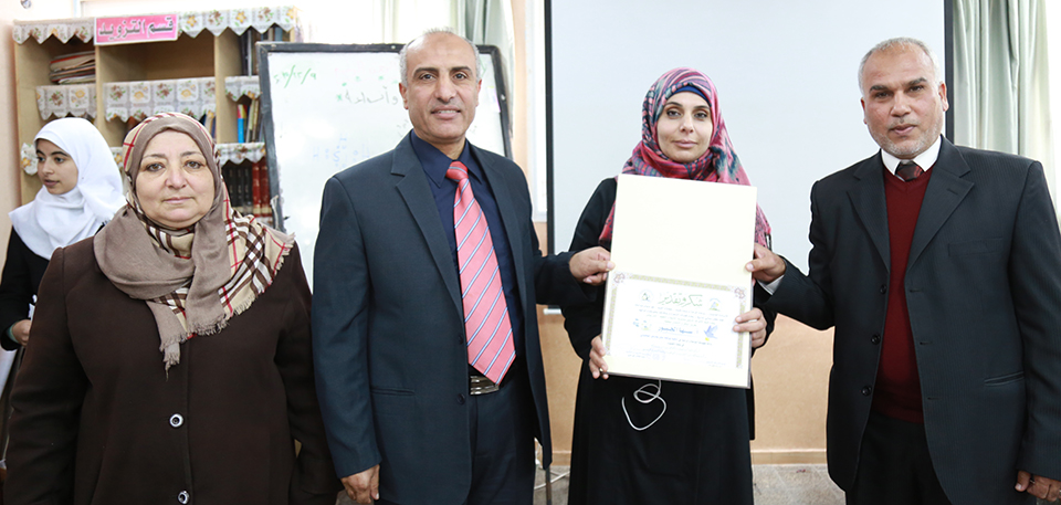 أ. أسماء مقداد(مديرة المدرسة)، ولاء عويضة، إسلام الأسطل