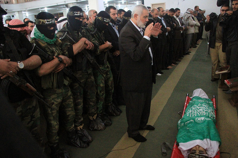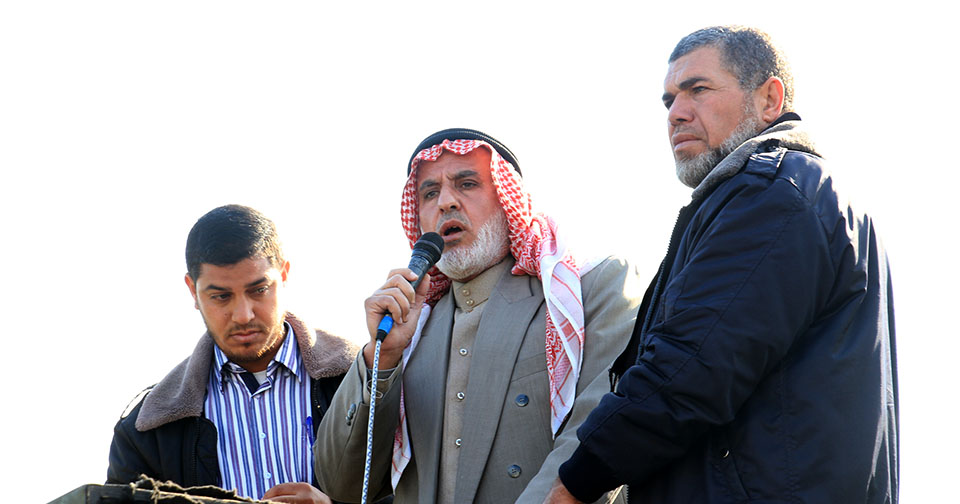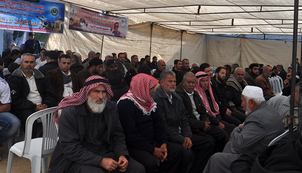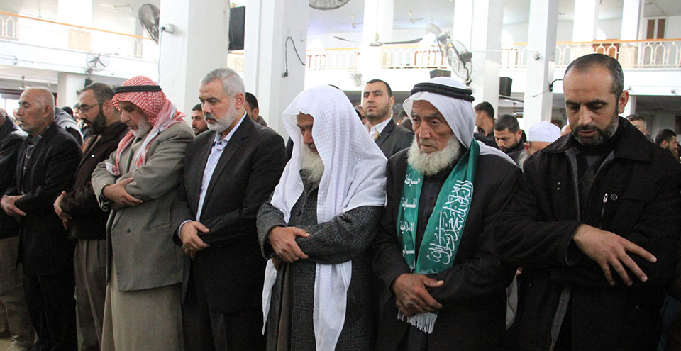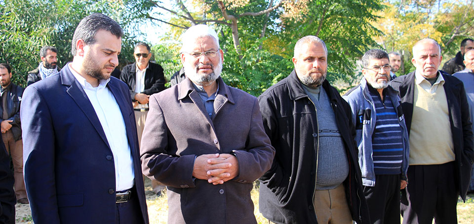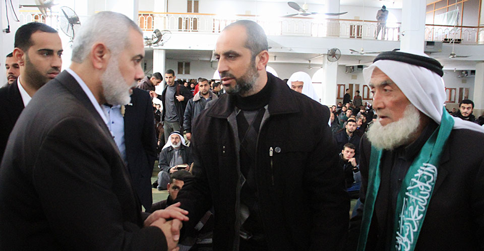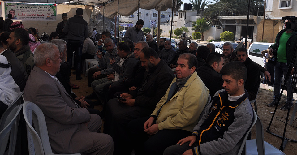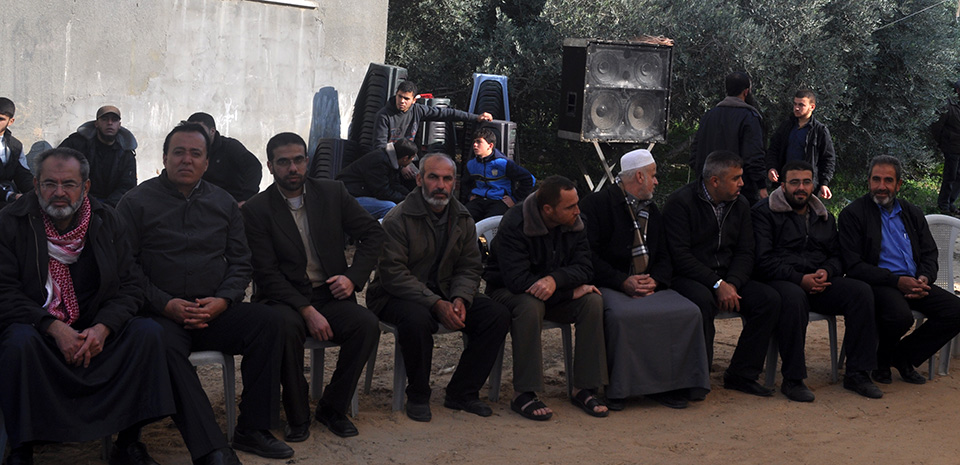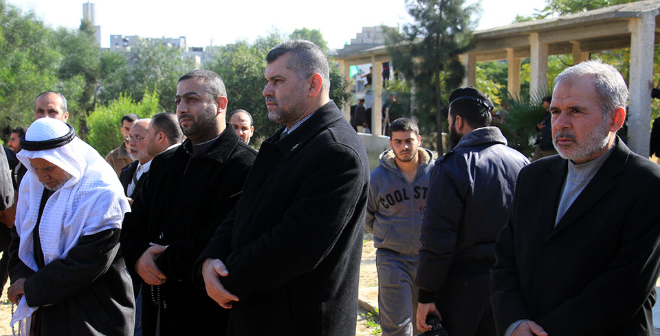 الحاج محمد سعيد الأغا(والد الشهيد)، أ. محمد عبدالوهاب(زوج شقيقة الشهيد)، د. اسماعيل عبدالسلام هنية(نائب رئيس المكتب السياسي لحركة حماس)