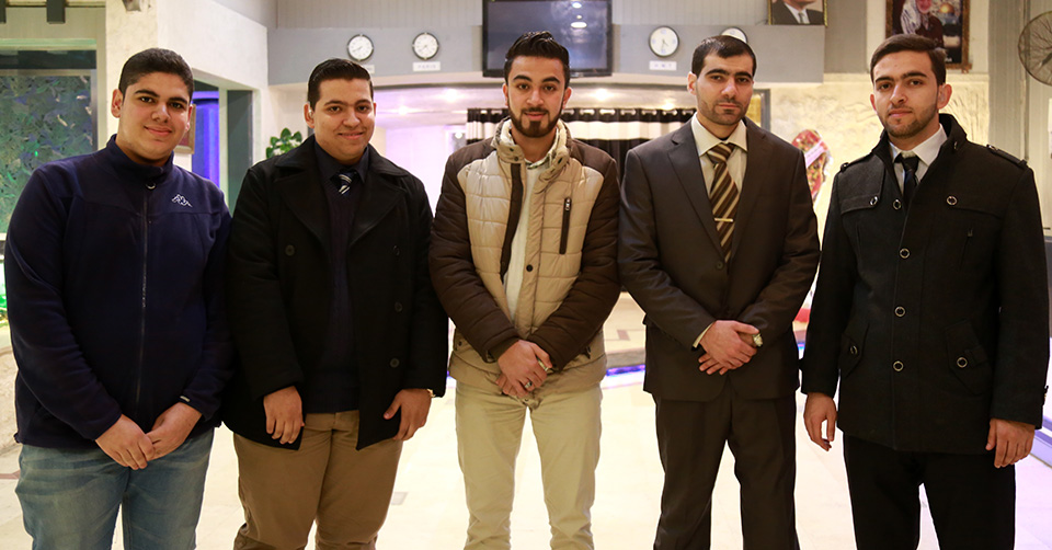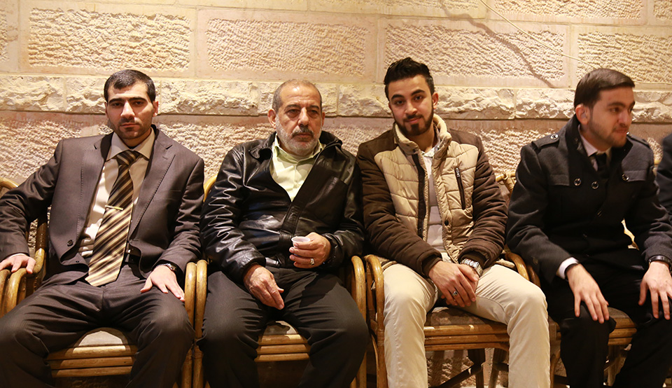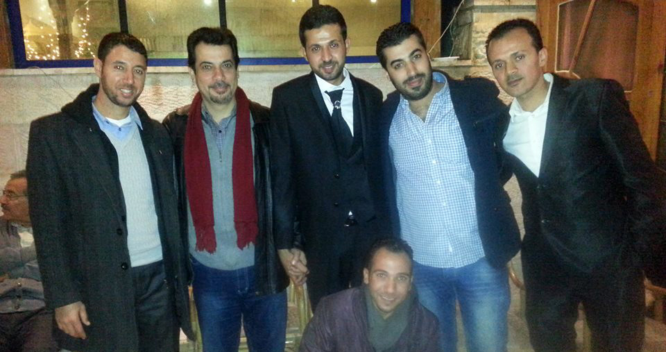عبدالله محمد (إبن عم العروس)، أحمد الأغا، م. سفيان الأغا، محمد نظام الأغا(إبن عم العروس)، أركان نزيه الأغا ووالده، أ. عزام مهدي (والد العروس)