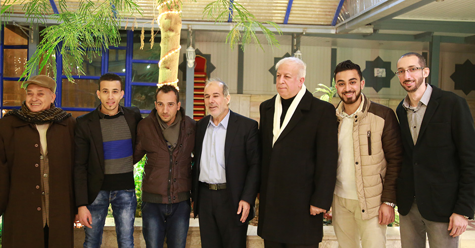 محمد نظام الأغا، م. سفيان الاغا، أ. نظام مهدي(عم العروس)، د. إبراهيم شعت، العريس،.، الحاج محمد صالح الأغا