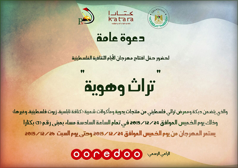 الرئيسة/متفرقات/الدوحة- دعوة لحضور مهرجان الايام الثقافية الفلسطينية متفرقات الدوحة- دعوة لحضور مهرجان الايام الثقافية الفلسطينية تاريخ النشر : الأربعاء | 23-12-2015 | 17:27 5296 بسم الله الرحمن الرحيم اضغط هنا للتواصل أو التعرف على السفير يحيى زكريا إسعيد حمدان الأغا يمكنك تلقي أحدث الأخبار أول بأول بانضمامك لإحدى مجموعات الواتساب الخاصة بالعائلة من خلال الضغط هنـا اظهر المزيد