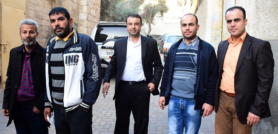 أ. عمر عودة، أ. سليمان أبو مصطفى، أ. محمود الفرا أبو سامر، أ. محمود صائب الفرا ووالده، م. جاسر موسى أبو حميد